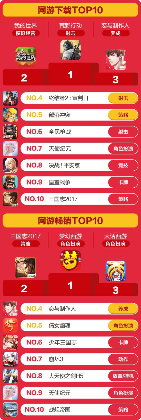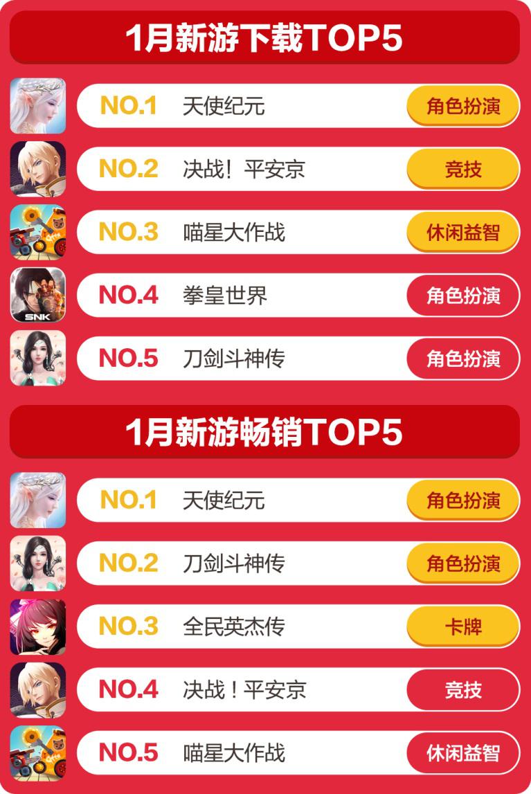 1月份最值得关注的新游,是由游族网络出手打造的角色扮演游戏《天使纪元》,新游下载、畅销双榜第一。春节假期马上就要来临,在游族网络的力推之下,我们相信《天使纪元》能够在接下来的时间里保持自己的上升势头。