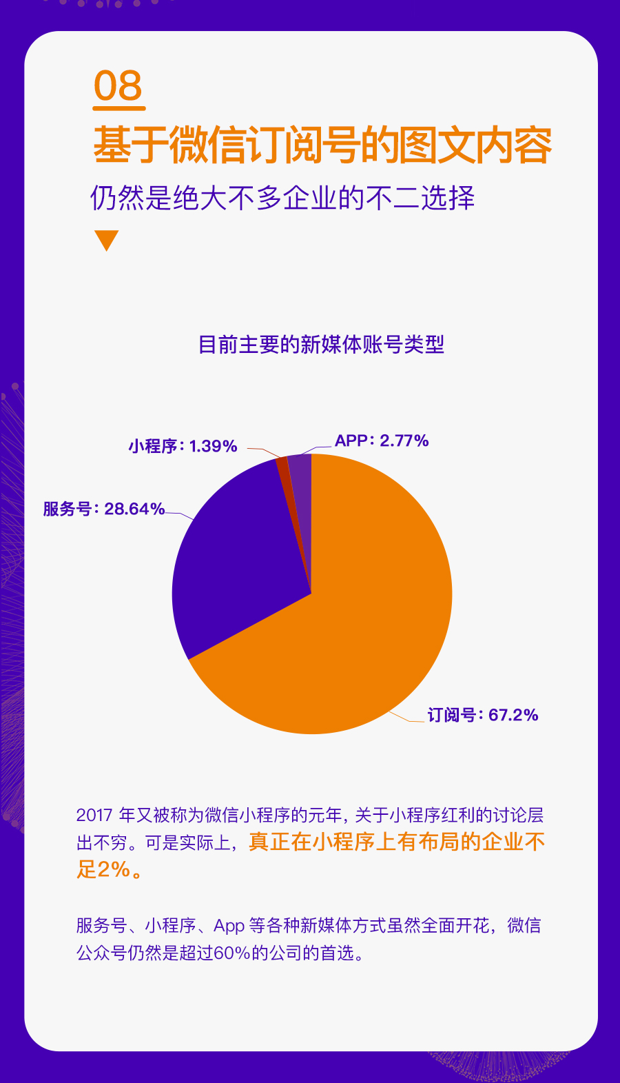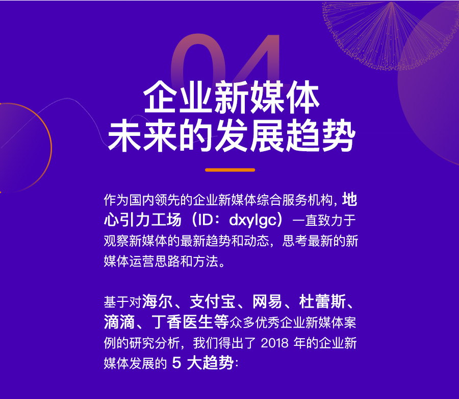 这一年,海尔、支付宝、杜蕾斯、丁香医生等品牌继续通过新媒体扩大影响力,这一年是微信公众号的第 5 个年头,也是微信小程序上线 1 周年的日子。