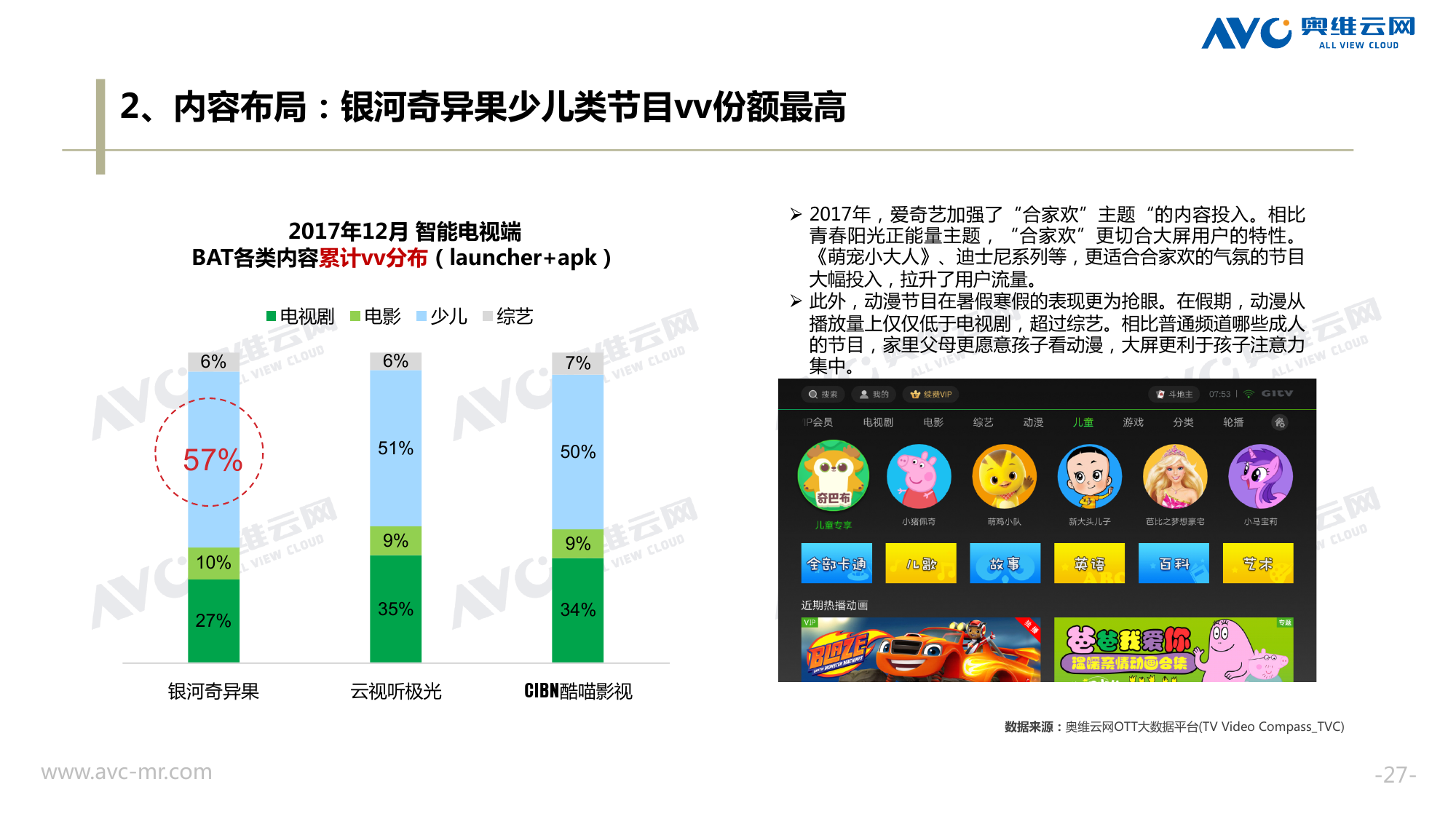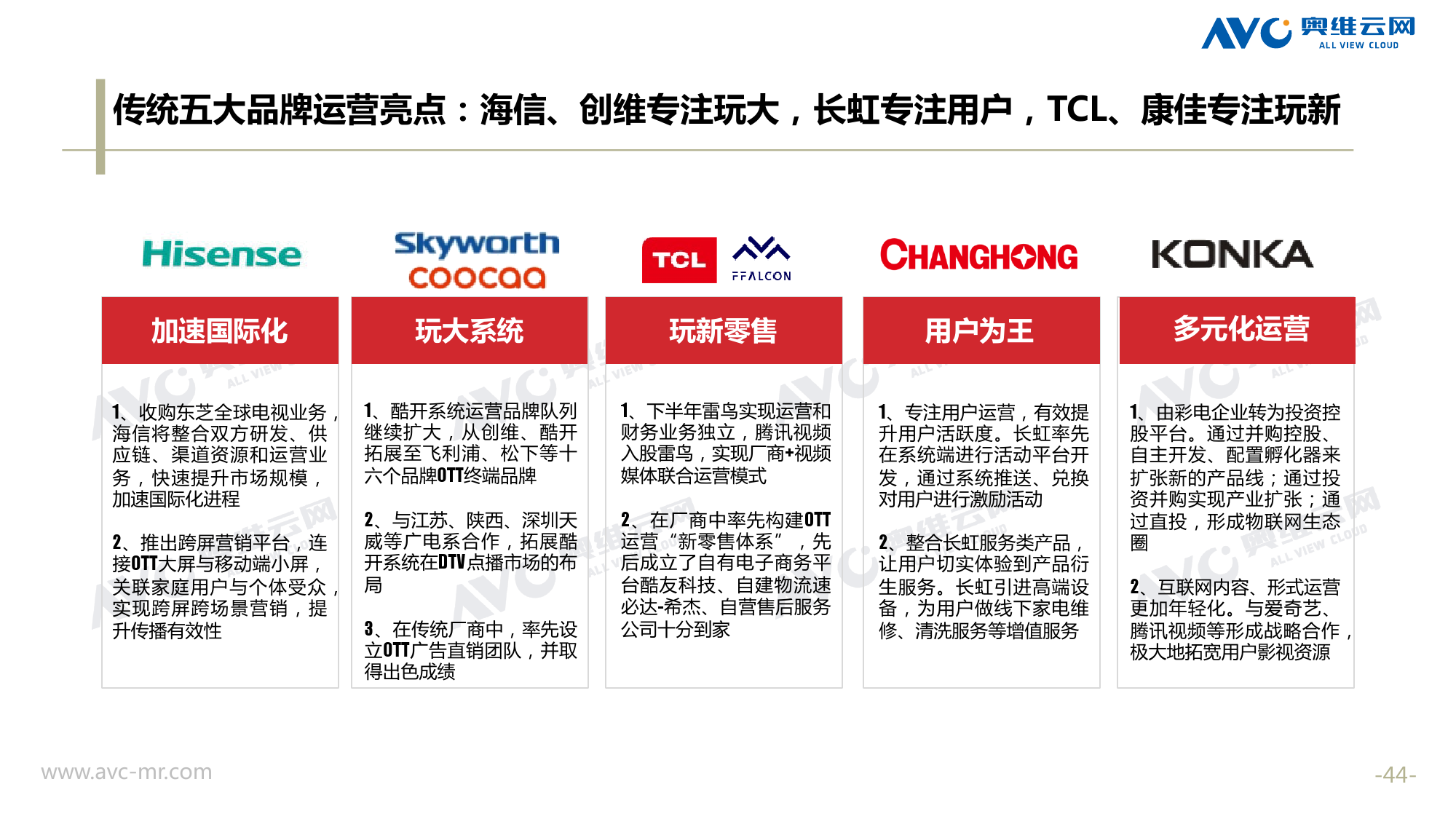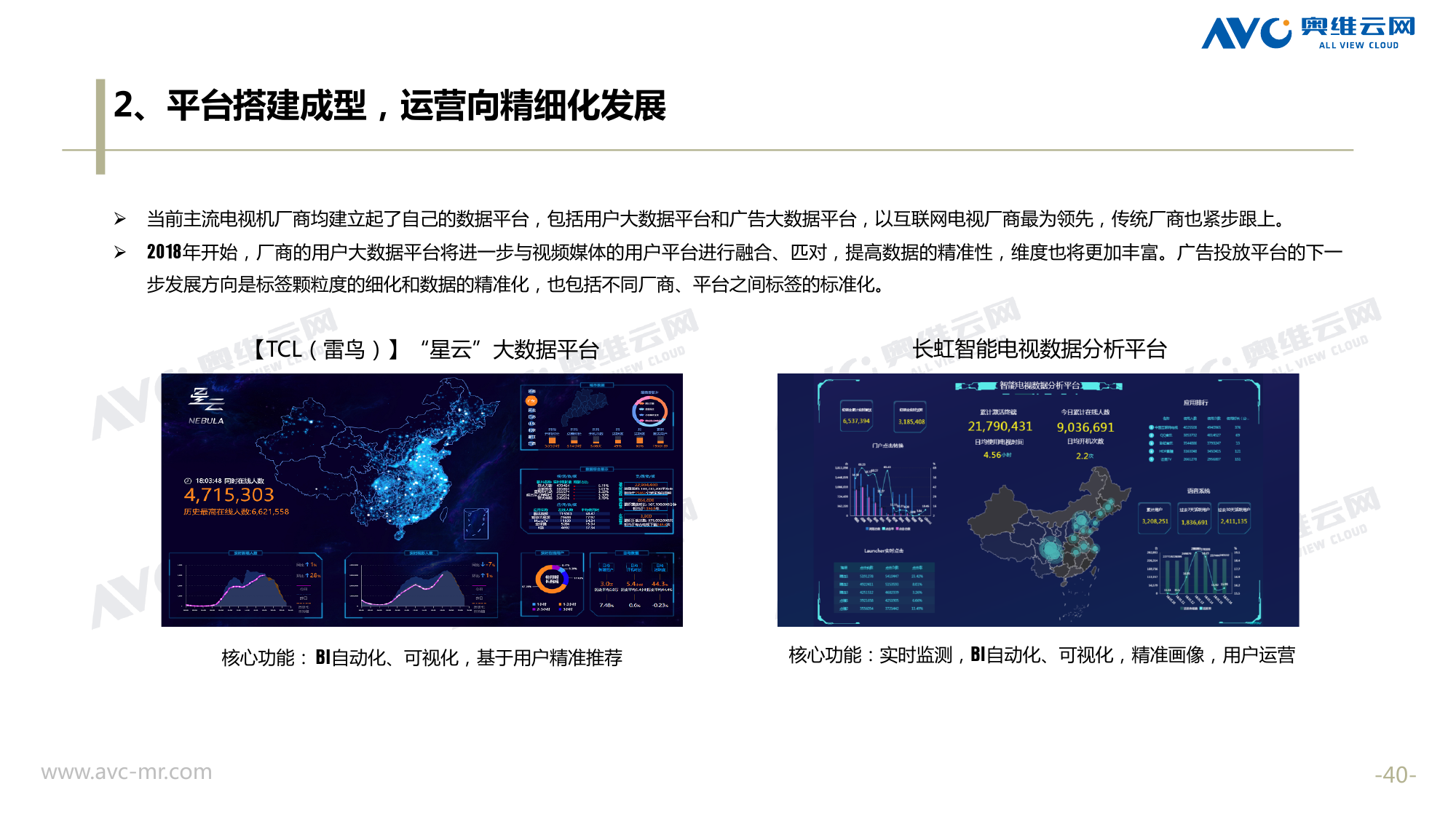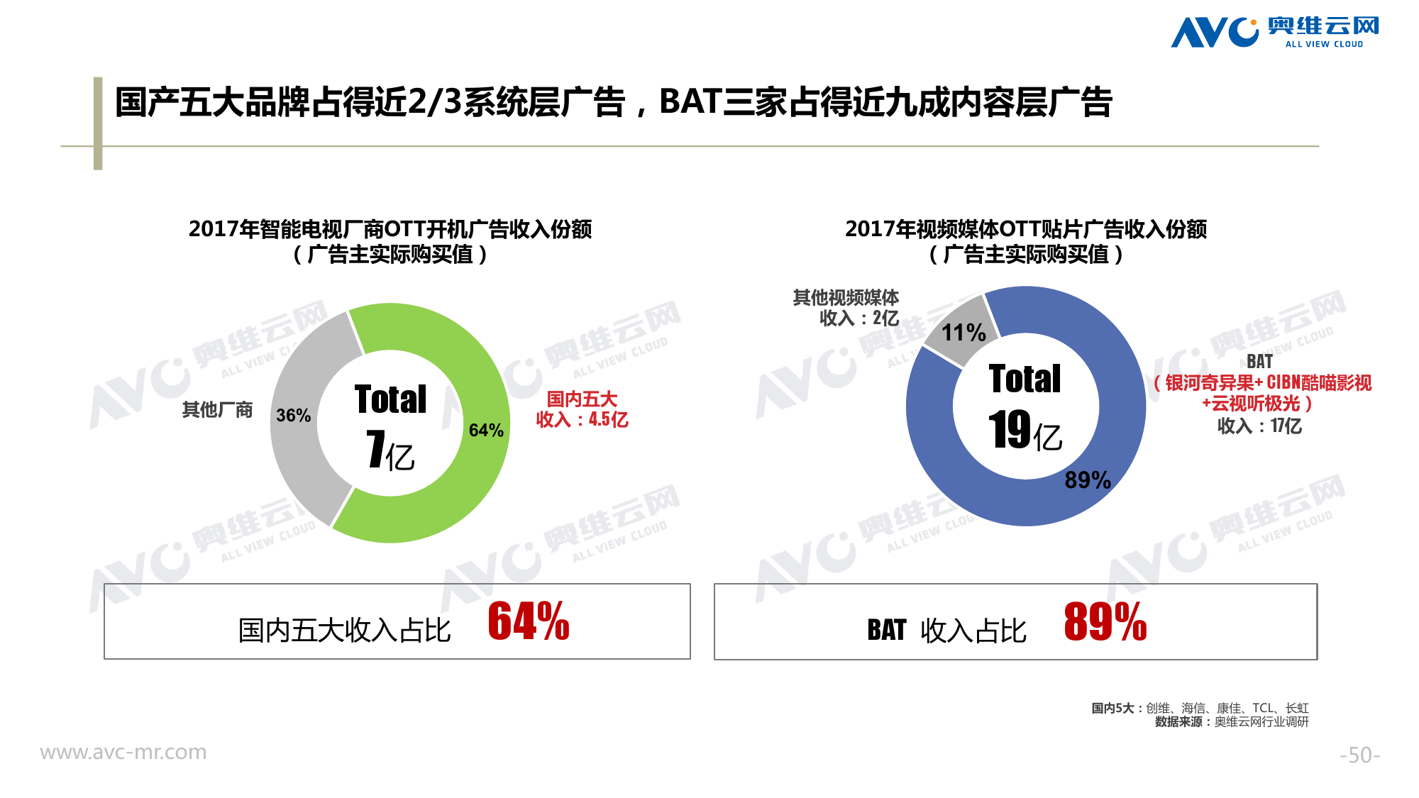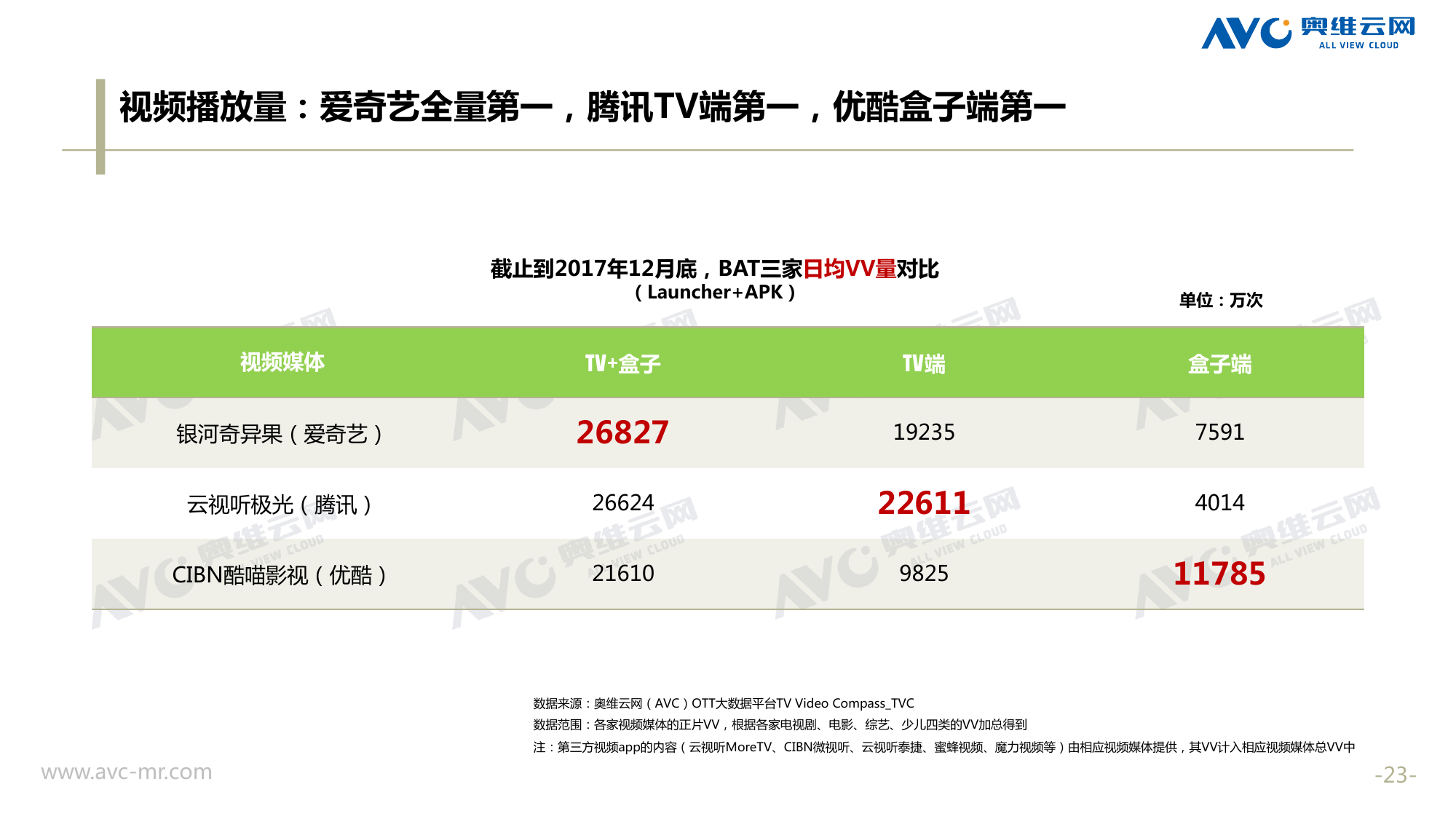 奥维云网:2018年中国OTT发展预测报告 《2018年中国OTT发展预测报告》,报告多维度分析了2017年OTT市场宏观发展环境分析、终端规模、 运营方向、广告投放趋势、资源价值变化,并对2018年的发展做出前瞻性预测。 PDF版本将分享到199IT交流群,199IT感谢您的支持! 更多阅读:奥维云网:2015年10月份中国OTT发展研究奥维云网:2016年第一周OTT盒子销量为14.9万台奥维云网:2015年11月中国OTT指数报告奥维云网 :2016年10月24日-10月30日OTT盒子观察报告奥维云网:2017年中OTT运营大数据蓝皮书奥维云网:2018年4月OTT大屏用户行为月报奥维云网:2017年度OTT全量数据排行榜奥维云网:2017年2月20日-26日OTT盒子观察报告奥维云网发布17年中OTT大数据蓝皮书: OTT用户月活终端8112万台同比增17.9%尼尔森:中国智能电视用户全样本收视行为及OTT广告价值研究奥维云网:2016年2月22日-2月28日OTT盒子观察报告奥维云网:2019年8月中国彩电市场简析奥维云网:2015年4月-9月线上智能电视盒大数据奥维云网:2016上半年中国OTT盒子市场分析及预测奥维云网:2019年Q1中国洗衣机市场总结报告
