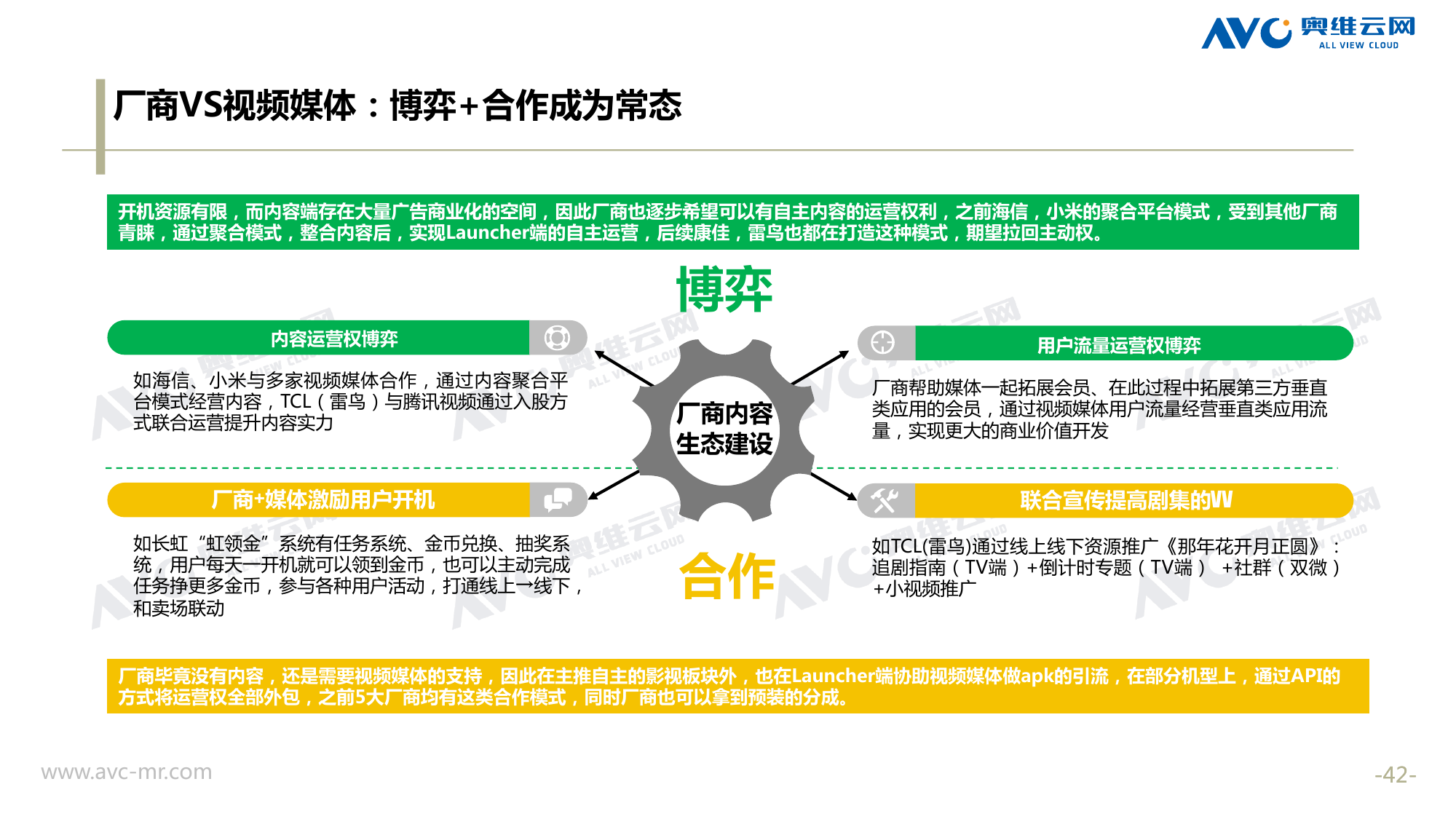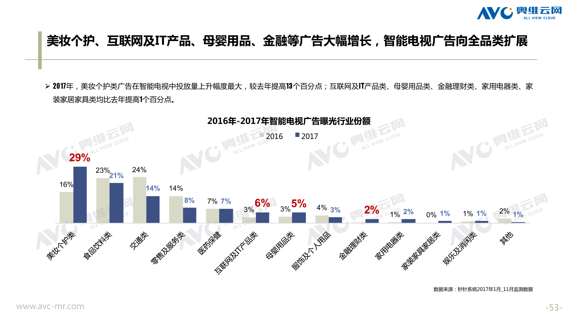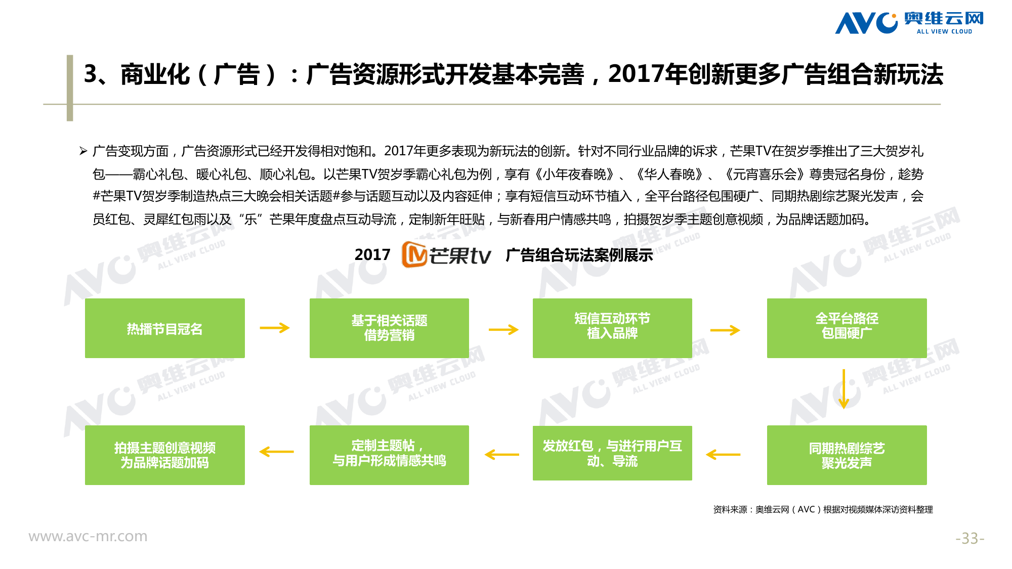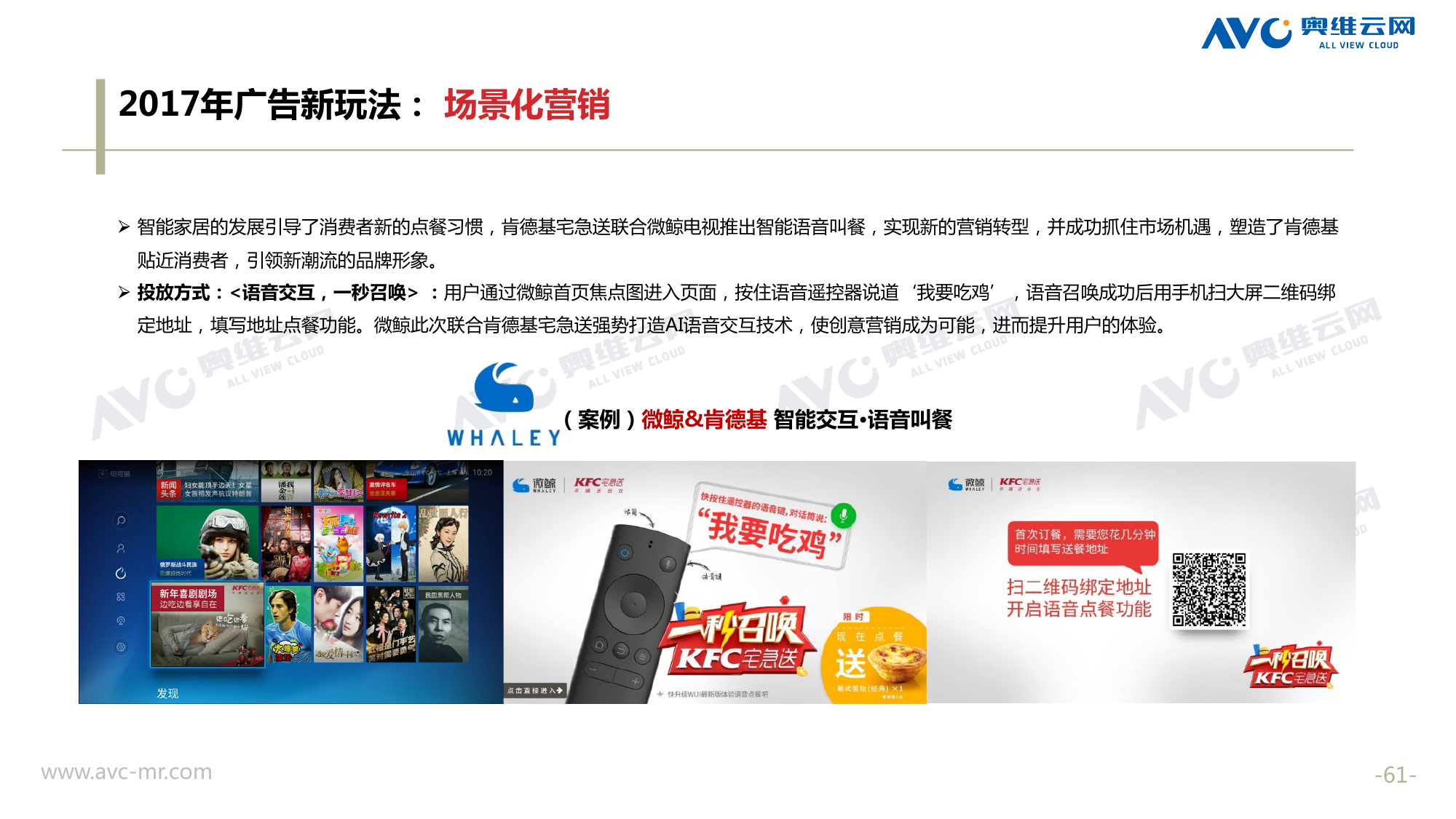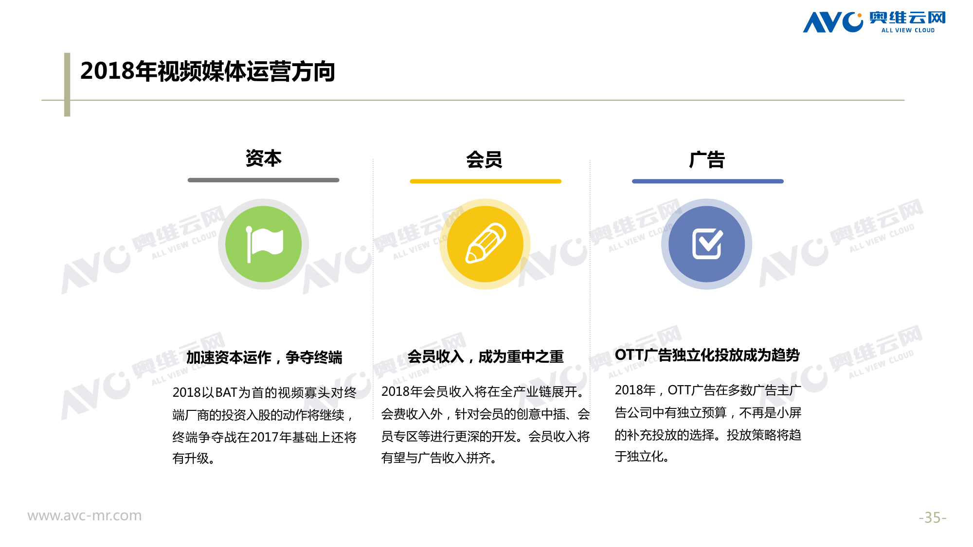 奥维云网:2018年中国OTT发展预测报告 《2018年中国OTT发展预测报告》,报告多维度分析了2017年OTT市场宏观发展环境分析、终端规模、 运营方向、广告投放趋势、资源价值变化,并对2018年的发展做出前瞻性预测。 PDF版本将分享到199IT交流群,199IT感谢您的支持! 更多阅读:奥维云网:2015年10月份中国OTT发展研究奥维云网:2016年第一周OTT盒子销量为14.9万台奥维云网:2015年11月中国OTT指数报告奥维云网 :2016年10月24日-10月30日OTT盒子观察报告奥维云网:2017年中OTT运营大数据蓝皮书奥维云网:2018年4月OTT大屏用户行为月报奥维云网:2017年度OTT全量数据排行榜奥维云网:2017年2月20日-26日OTT盒子观察报告奥维云网发布17年中OTT大数据蓝皮书: OTT用户月活终端8112万台同比增17.9%尼尔森:中国智能电视用户全样本收视行为及OTT广告价值研究奥维云网:2016年2月22日-2月28日OTT盒子观察报告奥维云网:2019年8月中国彩电市场简析奥维云网:2015年4月-9月线上智能电视盒大数据奥维云网:2016上半年中国OTT盒子市场分析及预测奥维云网:2019年Q1中国洗衣机市场总结报告