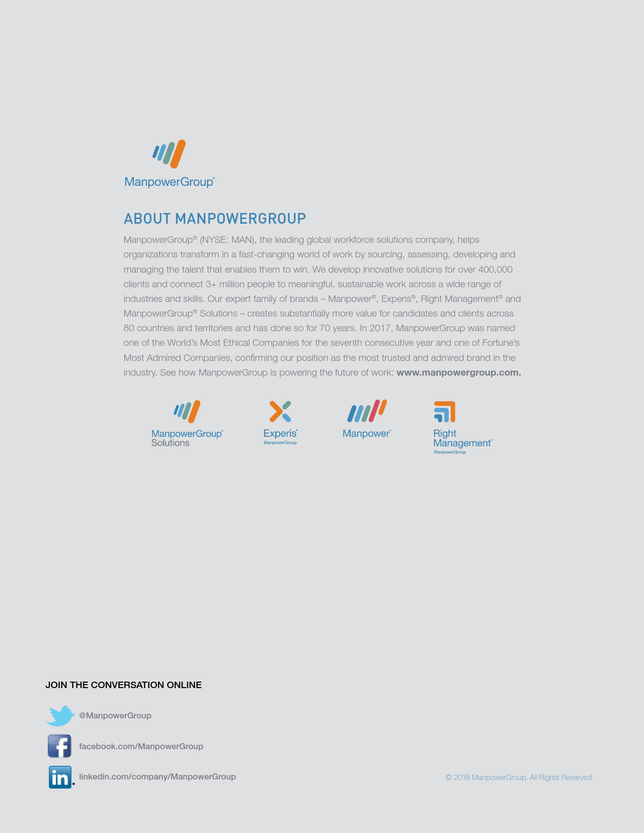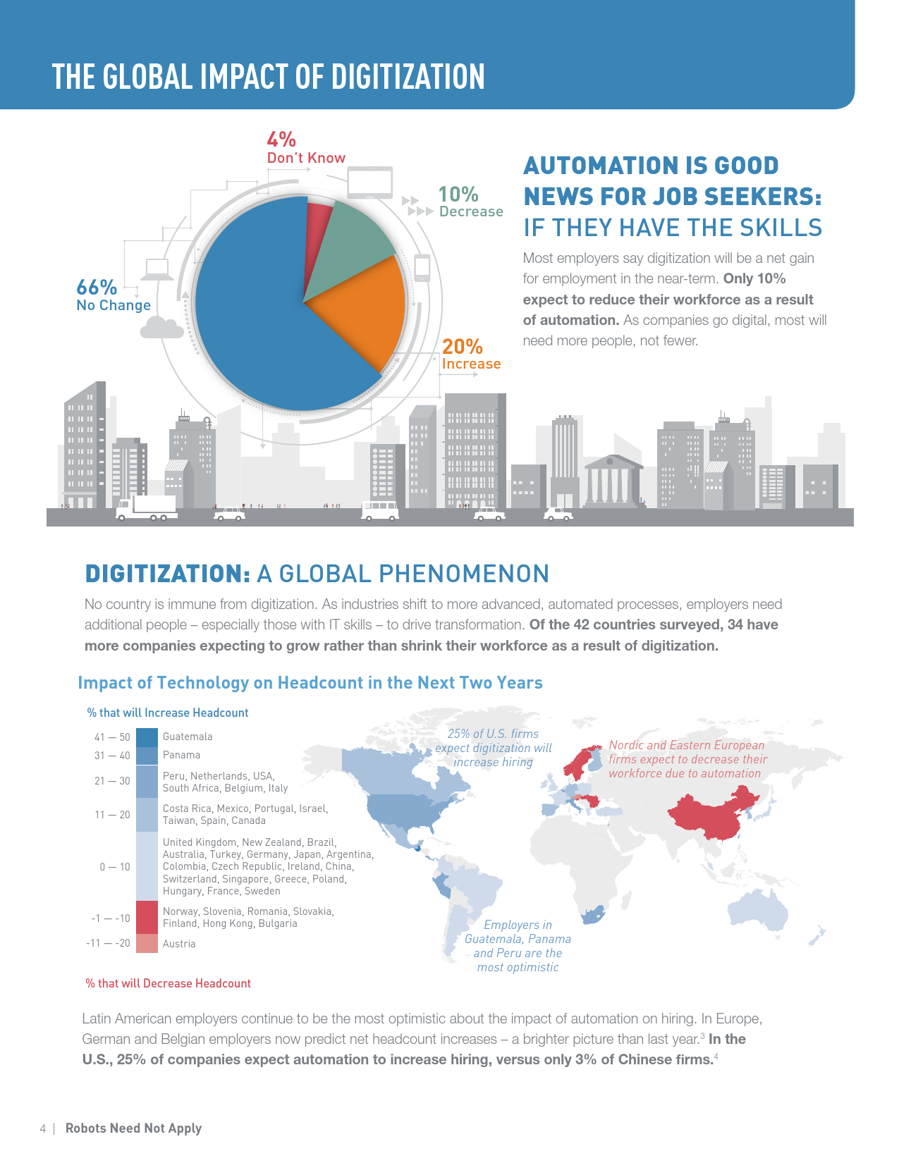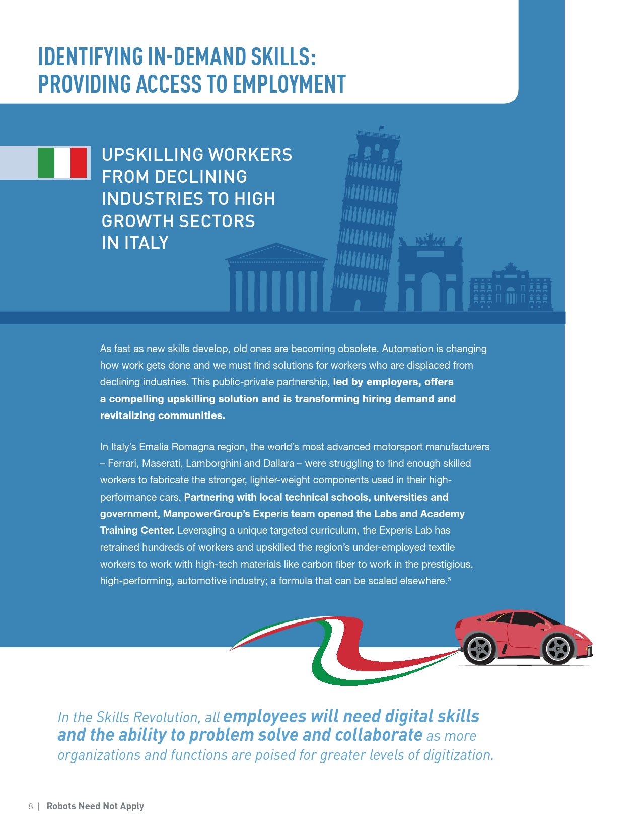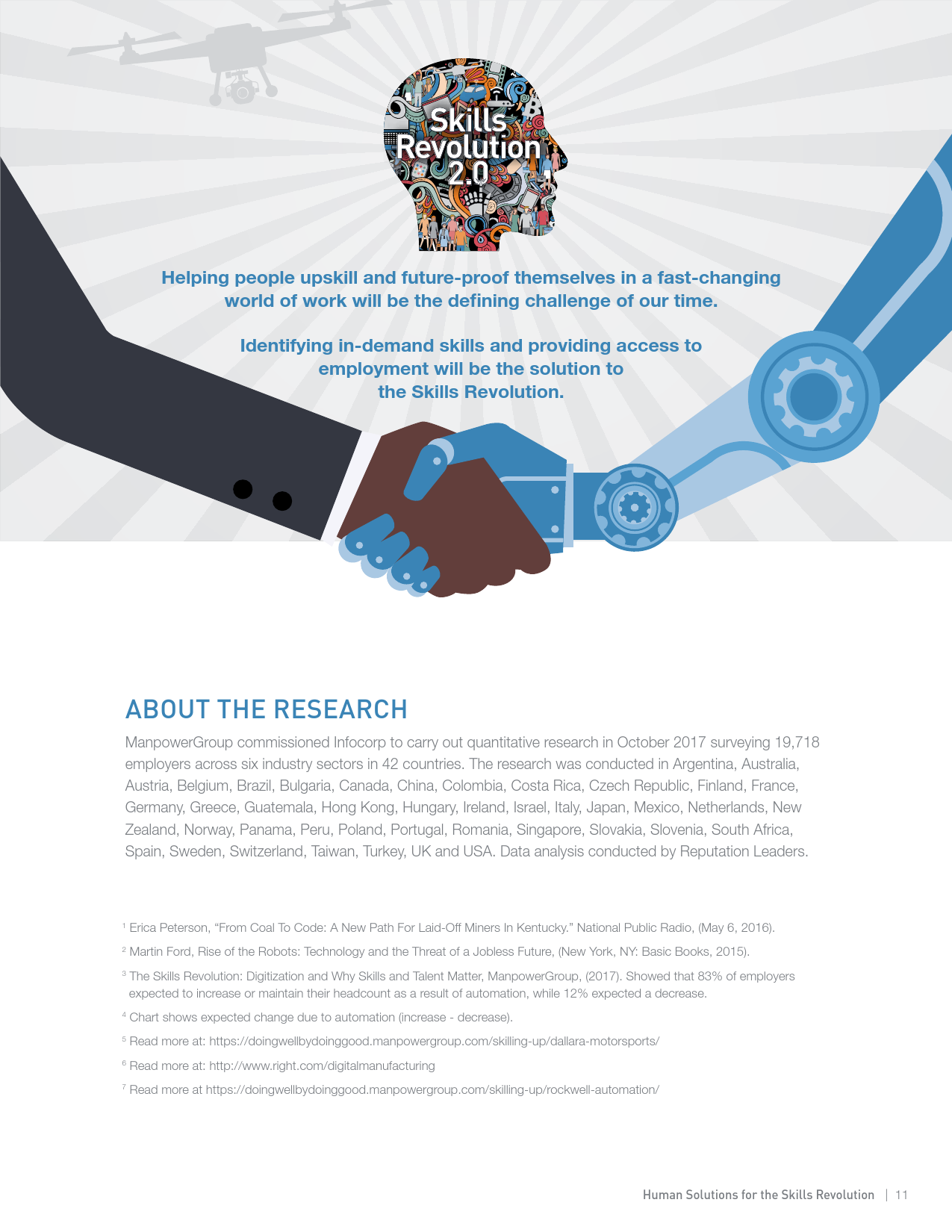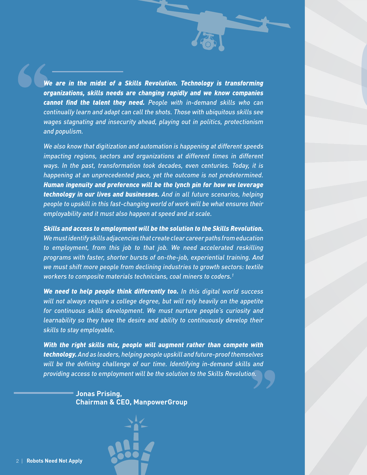 技能革命2.0:不要让机器取代你的岗位,技能革命下的人才解决方案 2018年冬季达沃斯期间,万宝盛华集团发布数字化转型的最新研究《技能革命2.0:不要让机器取代你的岗位,技能革命下的人才解决方案》,报告展示了数字时代自动化对员工的影响的实时图景——不是5年或10年的预测,而是正在或者即将发生的事情。 同时,报告揭示了公司内部的哪些职能将会成长或紧缩,软技能的价值——或者说人的优势——才是雇主最需要的,并且这也是他们面临的最大挑战。 PDF版本将分享到199IT交流群,199IT感谢您的支持! 更多阅读:你的工作还有多久会被机器取代?世界经济论坛报告:工作的未来下一次技能革命:未来的工作德勤咨询:自动化时代已经到来 您的员工何去何从?牛津经济研究所:机器人如何影响世界报告数读:未来20年近半数人类工作可被机器人替代–信息图IIC:工业物联网人工智能框架白皮书IFR:一文了解全球工业和服务机器人现状和趋势德勤咨询:与机器人老板共舞,你准备好了吗?Tractica:2018年底非工业机器人市场份额将增长至76%发改委:战略性新兴产业将加码 中国进出口银行提供不低于8000亿元人民币融资2018年中国战略性新兴产业展望:新兴产业是经济增长的重要力量“互联网+机器人”碰撞出啥样火花? 华数机器人以大数据云平台为智能制造连接“大脑”“汇新杯”新兴科技+互联网创新大赛火热报名中投资界原创:创投“国家队”大军集结基金化运作,10家试点央企执掌9500亿元!