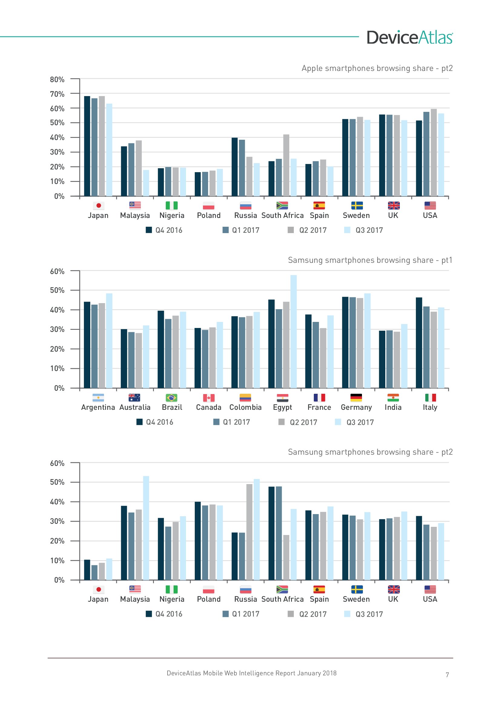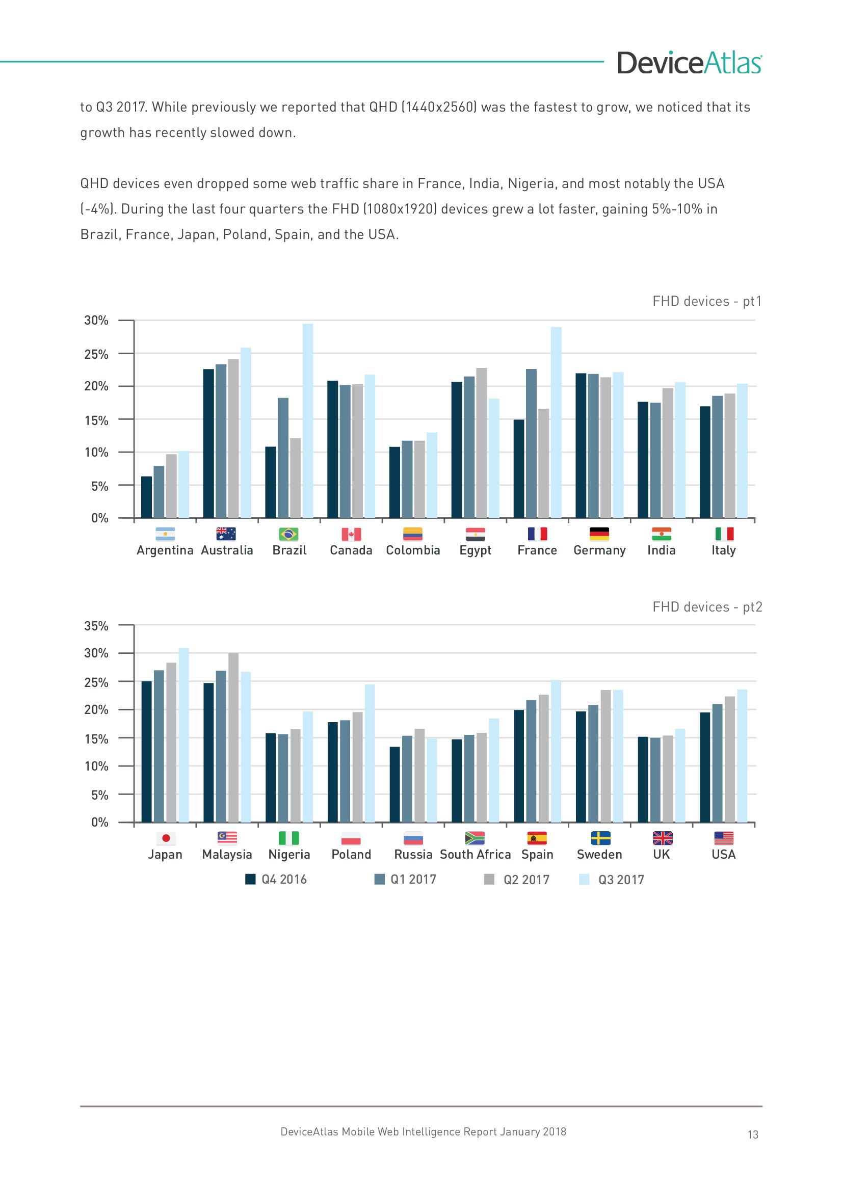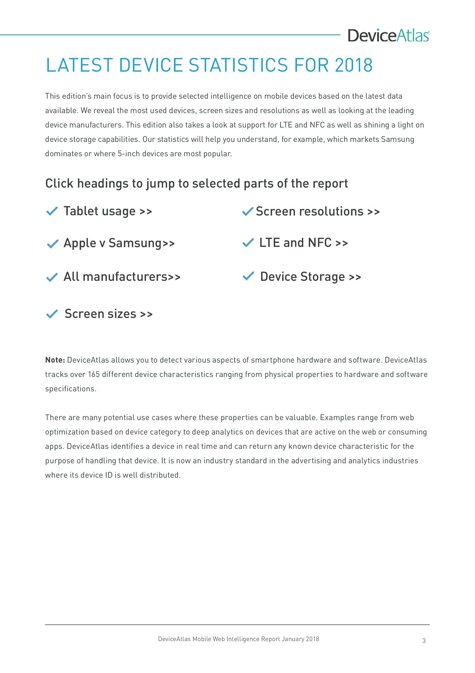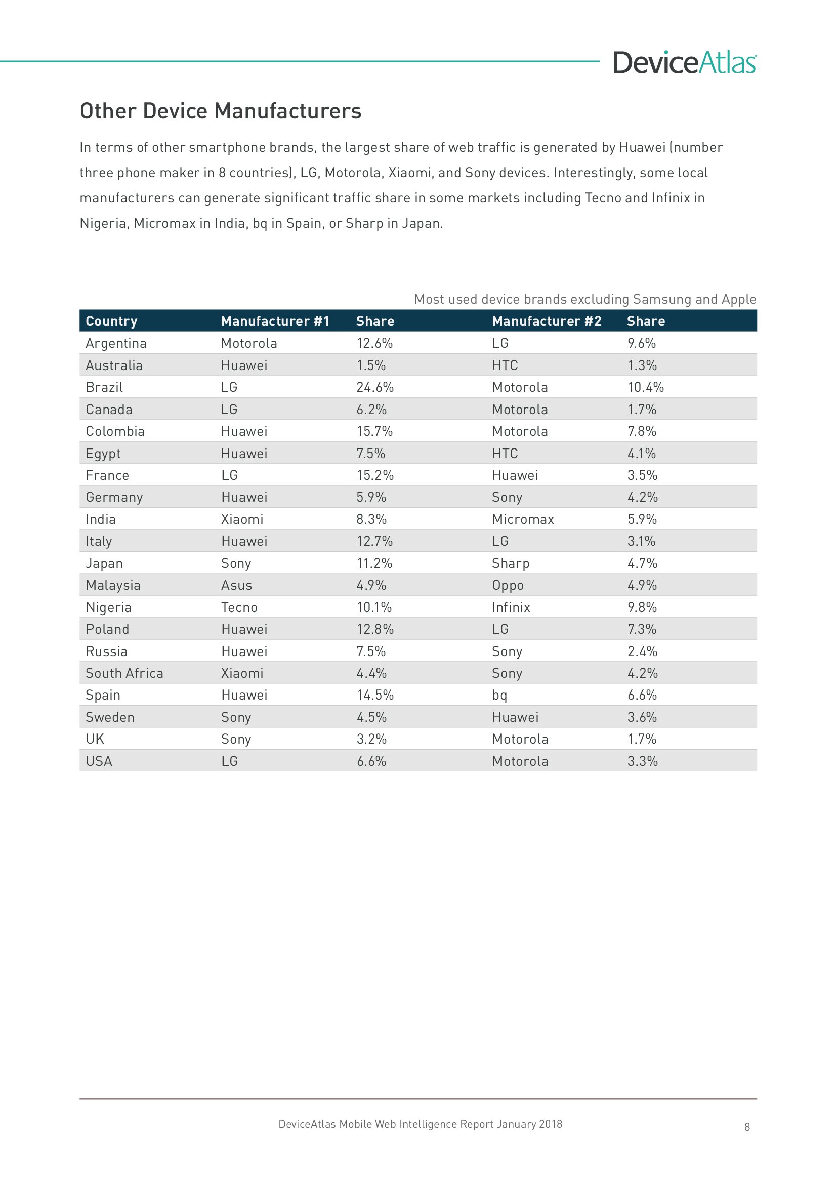 DeviceAtlas发布了新报告“移动网络情报”,调查了全球20个国家平板和智能手机使用量、屏幕尺寸、顶级制造商、设备内存、LTE、NFC等。