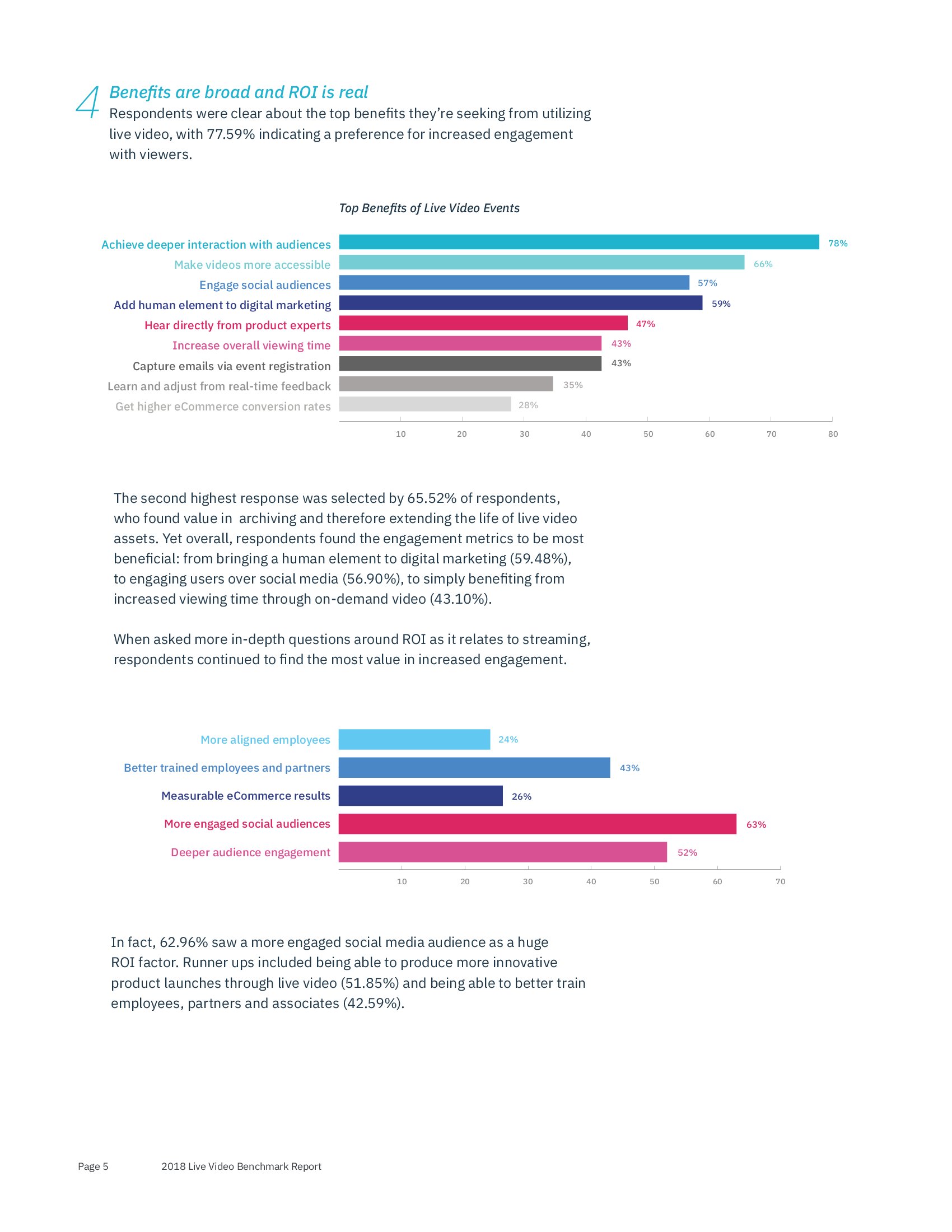 直播视频活动提供的其他好处包括:使视频更易于访问(66%)、为网络营销增加人为因素(59%),以及直接从产品专家(47%)听取报告。