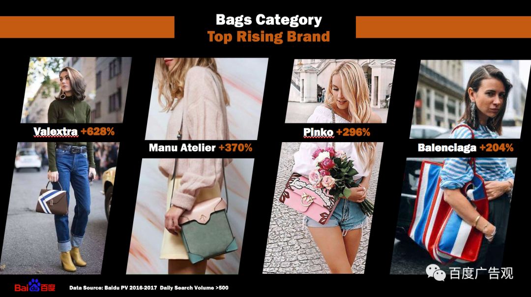 说完了消费者洞察,我们来看看干货。下面依次为大家介绍四大品类的检索趋势和搜索内容分析。首先,让我们带着一丝忐忑和期待,从我们最爱的包包开始说起!