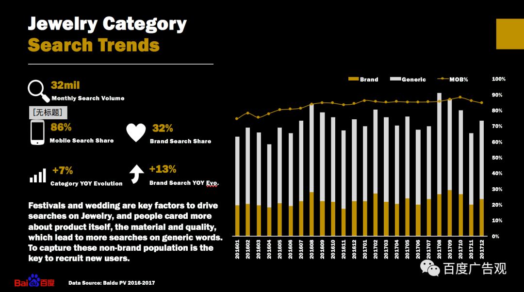 在过去一年里,我们发现中国消费者越来越关注一些行业知识类的信息,对于珠宝,他们在珠宝鉴定相关词的检索增幅60%,而在腕表上,他们更关注“巴塞尔表展”和“日内瓦表展”了,甚至也会喜欢了解时装秀和品牌的设计总监等等,所以说我们面对的是一群越发成熟甚至挑剔的消费者。