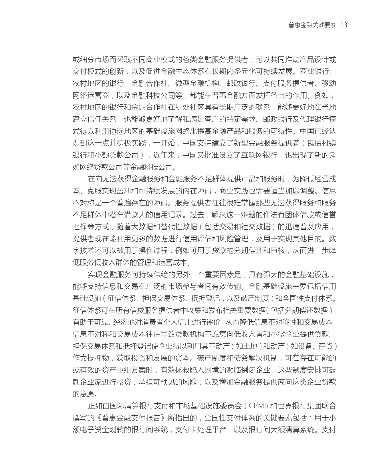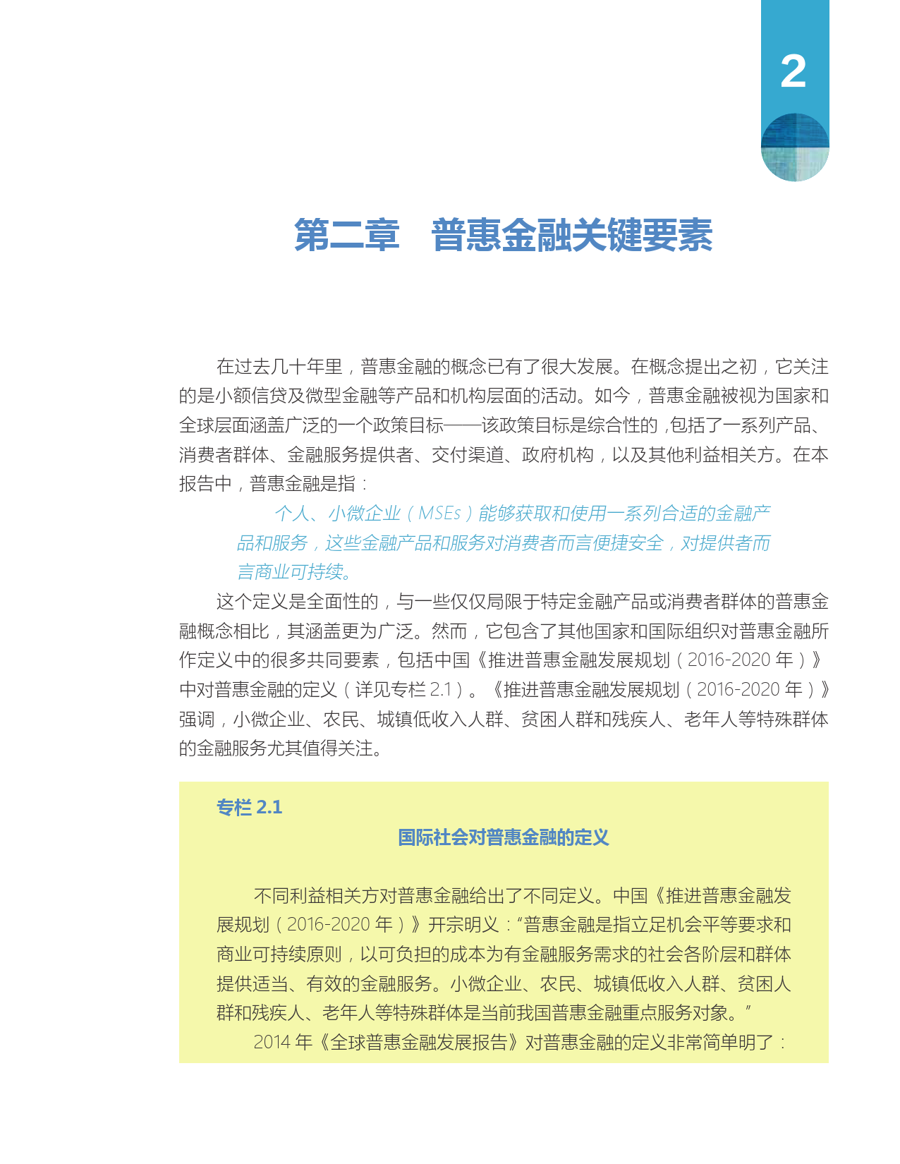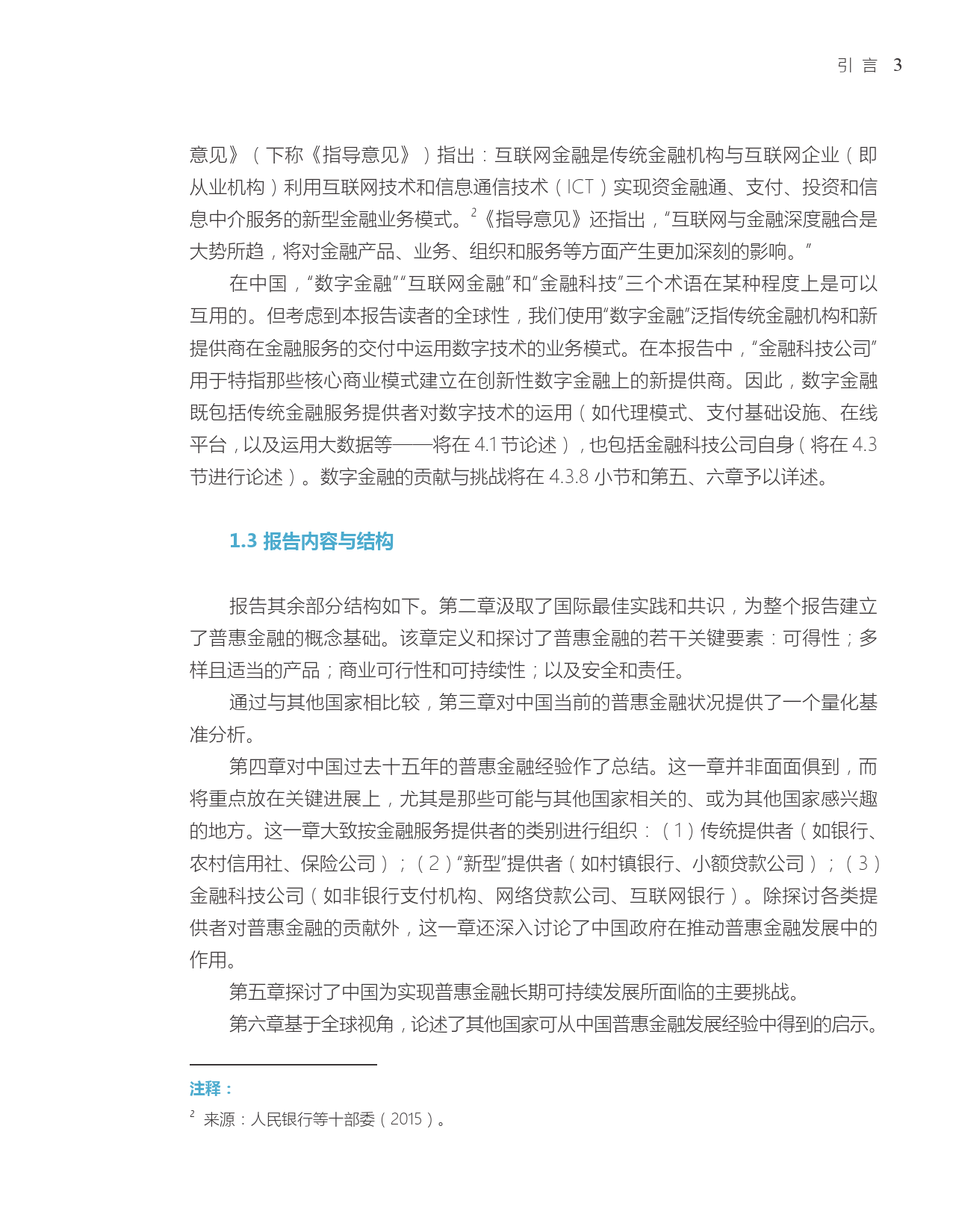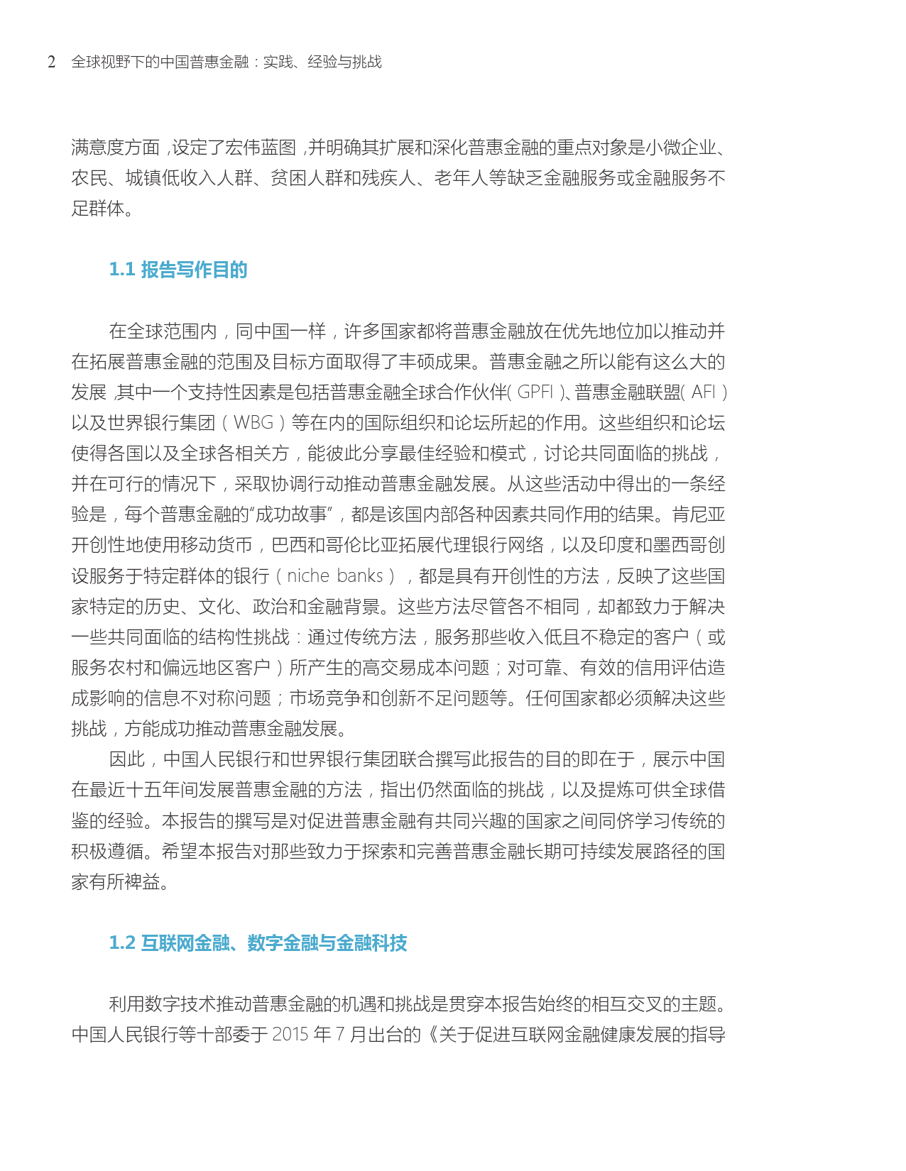 报告对中国过去15年间普惠金融发展方法和模式进行了深入探讨和总结。报告将中国普惠金融发展进程与其他相近经济体进行了比较,并分析了中国普惠金融经验的关键进展和要素。报告也指出了中国普惠金融仍然面临的挑战,并总结了可供其他国家政策制定者借鉴的经验。该报告由中国人民银行和世界银行集团联合撰写。
