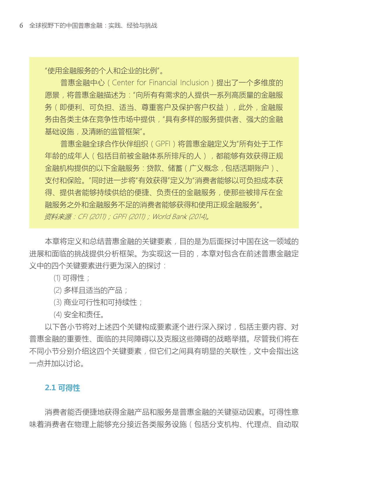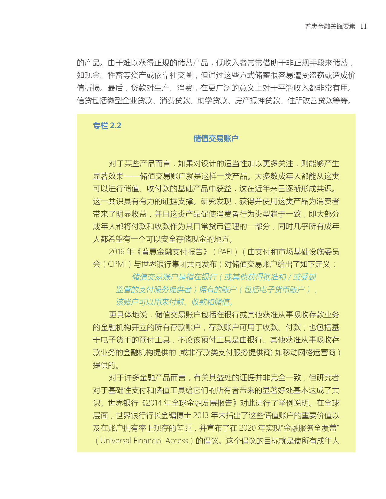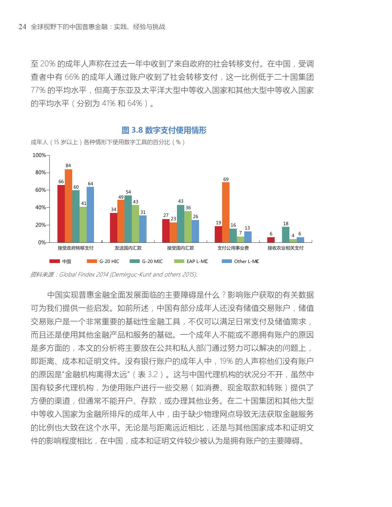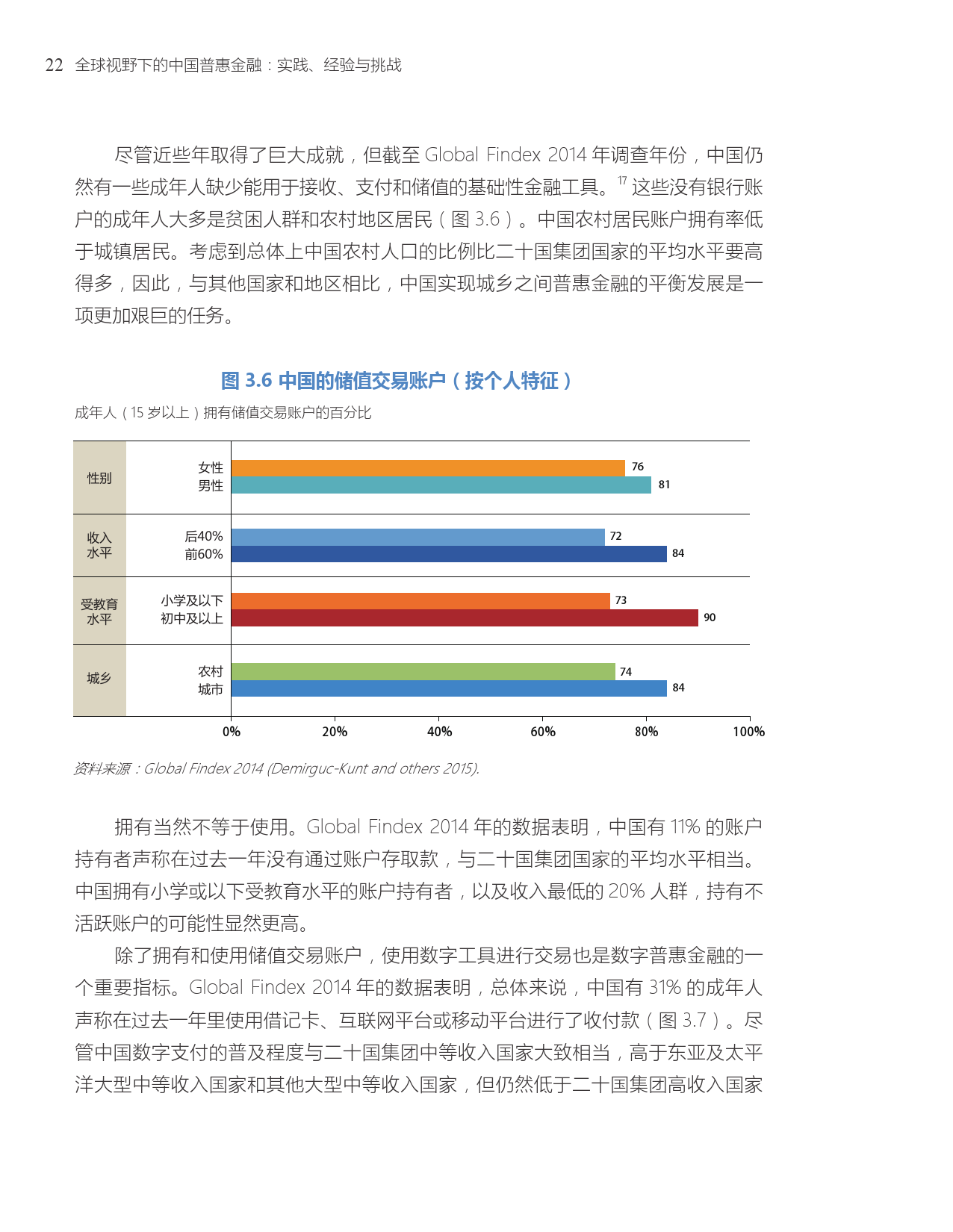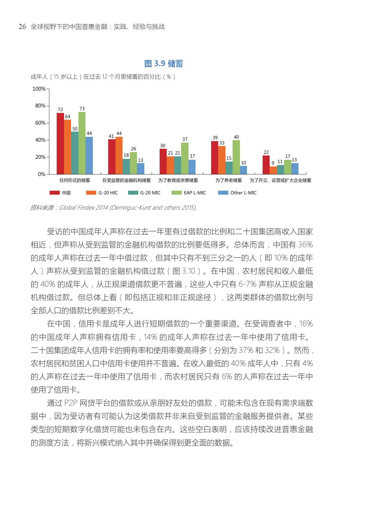 近年来中国普惠金融取得的成功及未来的发展路径与世界银行集团到2020年实现“全球金融普及”的承诺高度相关。“全球金融普及”的目标是确保全球的成年人能够获得可以储蓄和转账的交易账户。中国是“全球金融普及”倡议的25个优先国家之一。