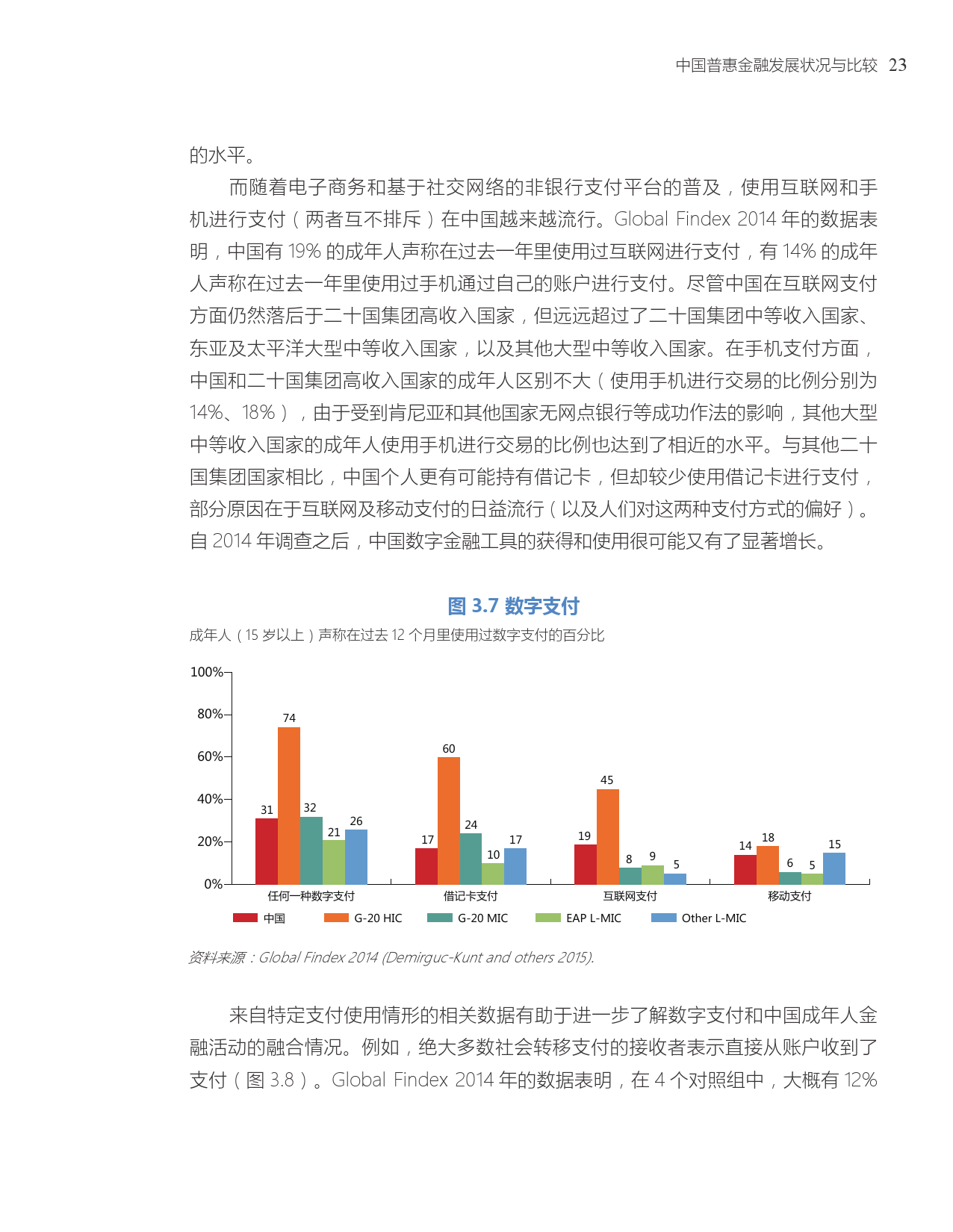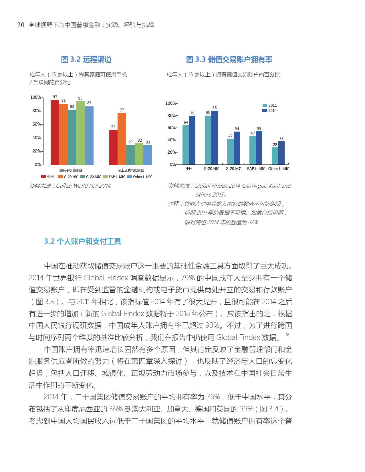 中国的账户拥有率(普惠金融的基本衡量指标)显著增长,已经与其他G20国家大致相当。