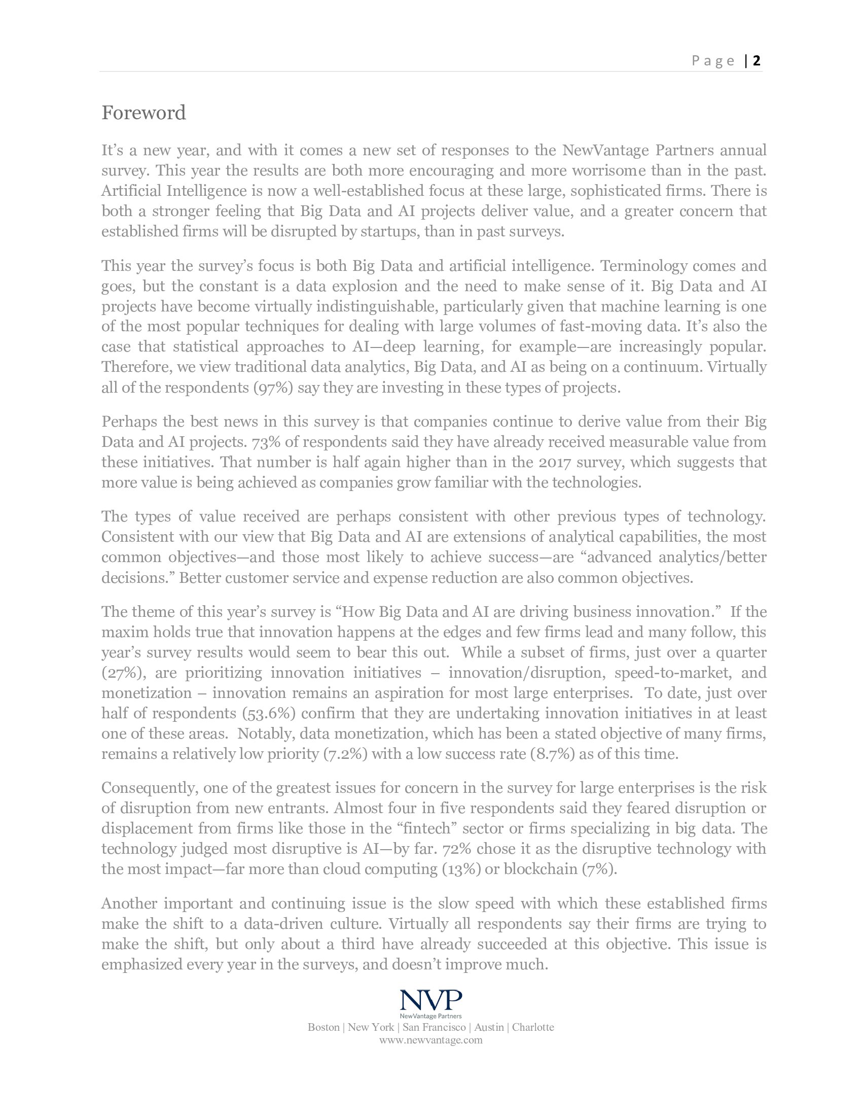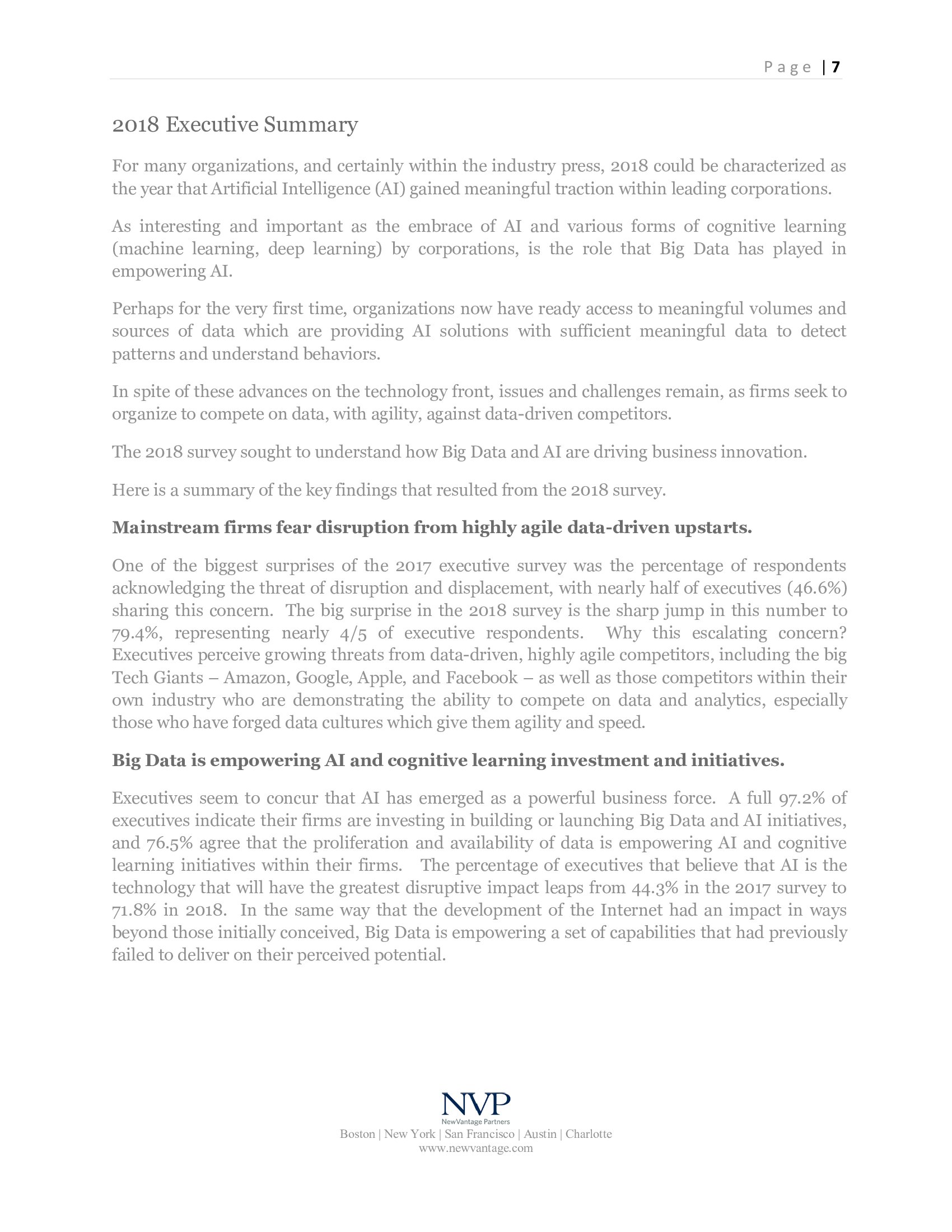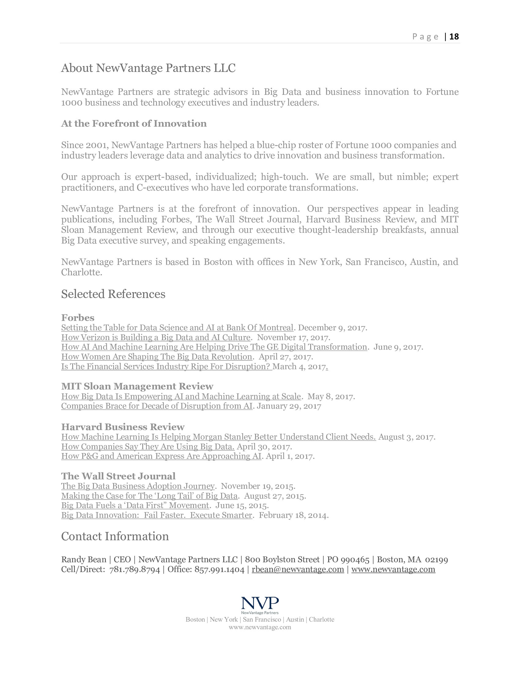 New Vantage发布了“2018年大数据高管报告”,分析大数据和人工智能将如何推动业务创新。对许多机构来说,2018年可以被定义为人工智能(AI)在领先企业中获得重要发展的一年。