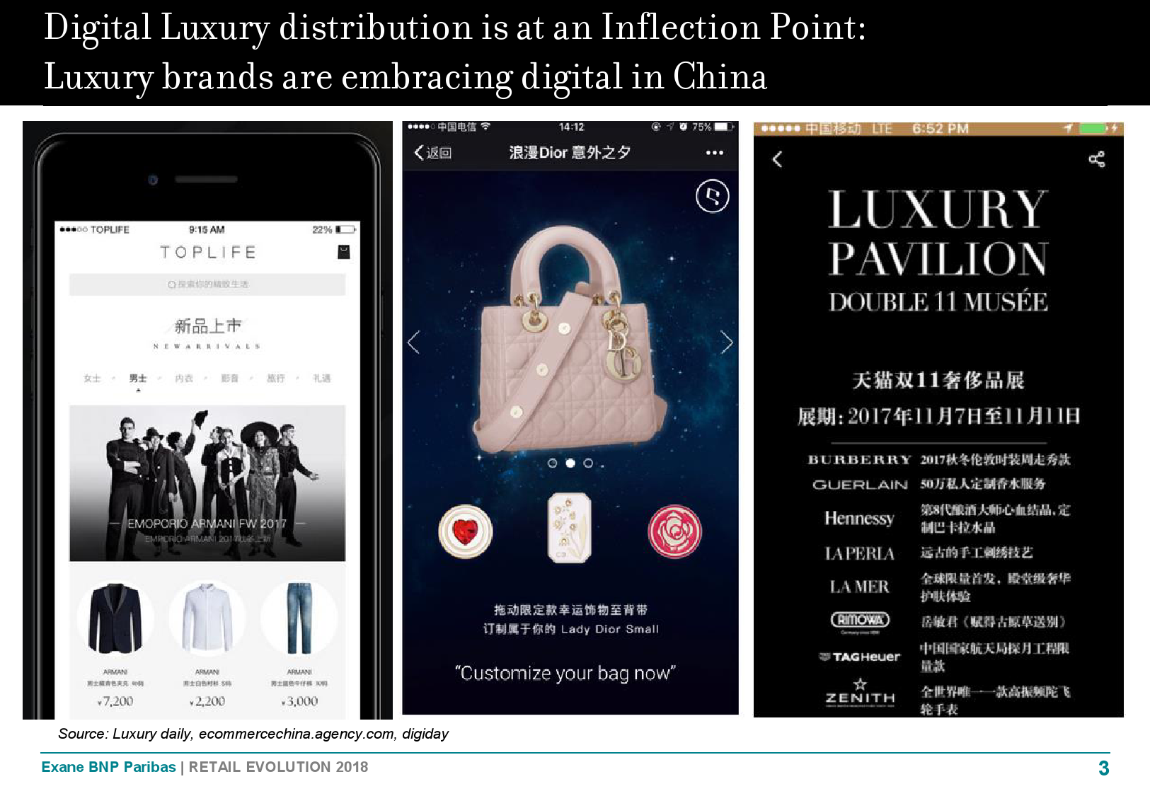报告显示,2017年奢侈品的多渠道零售迎来了首次增长放缓,与之相对应的是单一线上渠道和单一实体渠道的增长加速。在未来,奢侈品的多渠道零售仍将持续增长,线上渠道和实体渠道将不再孤立而将更多地成为奢侈品消费整体消费体验的组成元素。约有 55%的奢侈品线上渠道消费者是通过手机或平板电脑进行消费的,年轻人(75%)和中国消费者(77%)的相应比例则更高,预计在未来使用手机进行奢侈品消费的增长趋势将会更加明显。