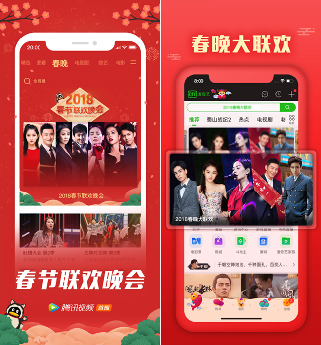 春节一周,游戏仍然霸占了收入前 10 强榜单,但腾讯视频和爱奇艺等领先在线视频平台也成功跻身热门 App 之列。许多发行商提供了与春节相关的内容。腾讯视频和爱奇艺都提供了年度最受关注的节目——春节联欢晚会的在线直播。