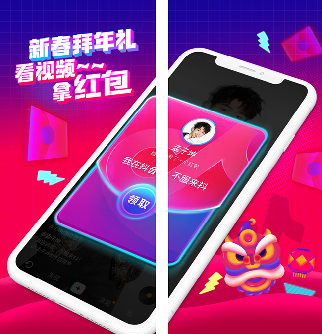 抖音是另一个值得关注的 App,在中国聚集了很高的人气,并且也推出了春节主题的更新。作为一个短视频分享平台,”抖音” 嵌入了流行的收发红包功能,让观众有机会赢取奖品。
