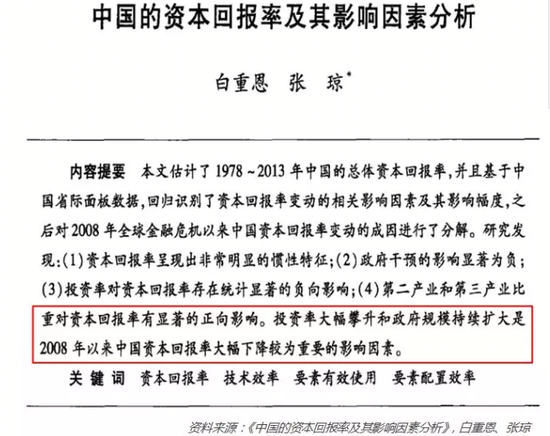 这一现象并不难理解。根据经济学“边际报酬递减”的有关理论,在国民经济劳动力供给不变的前提下,不断扩大投资,一定程度之后,资本的边际报酬就会呈现出递减趋势,即投入等量的资本,从中能够获得的回报却越来越少。