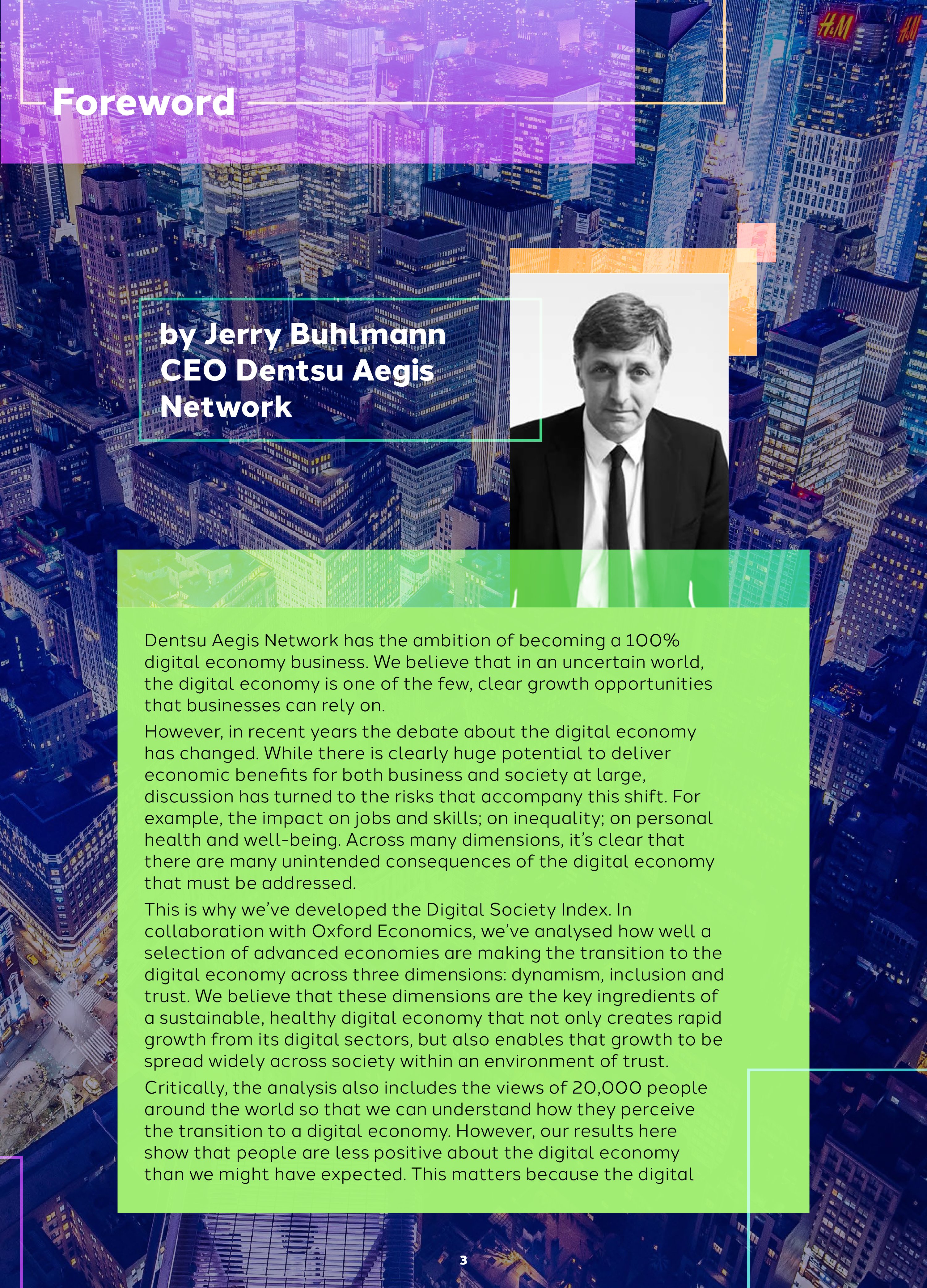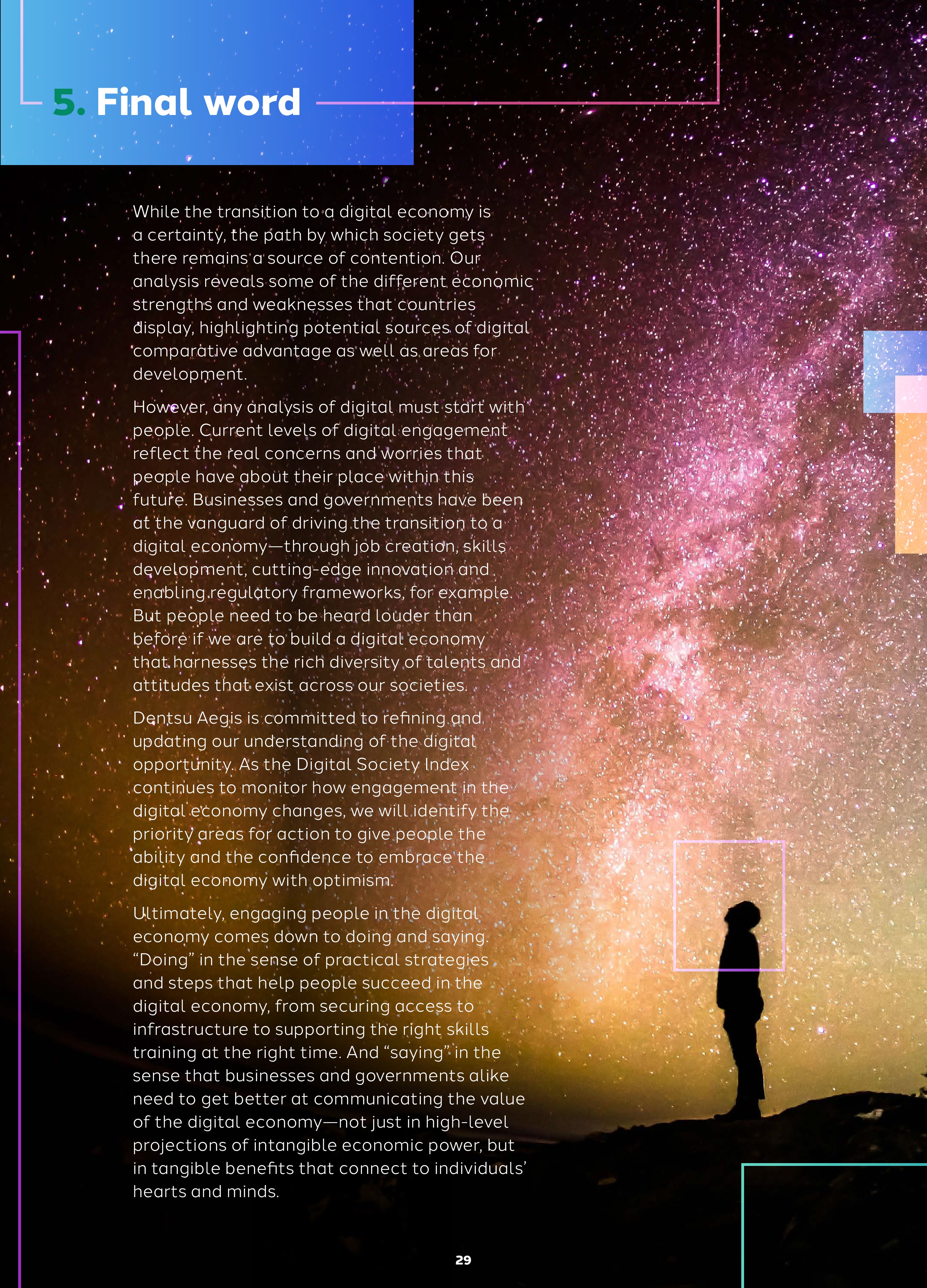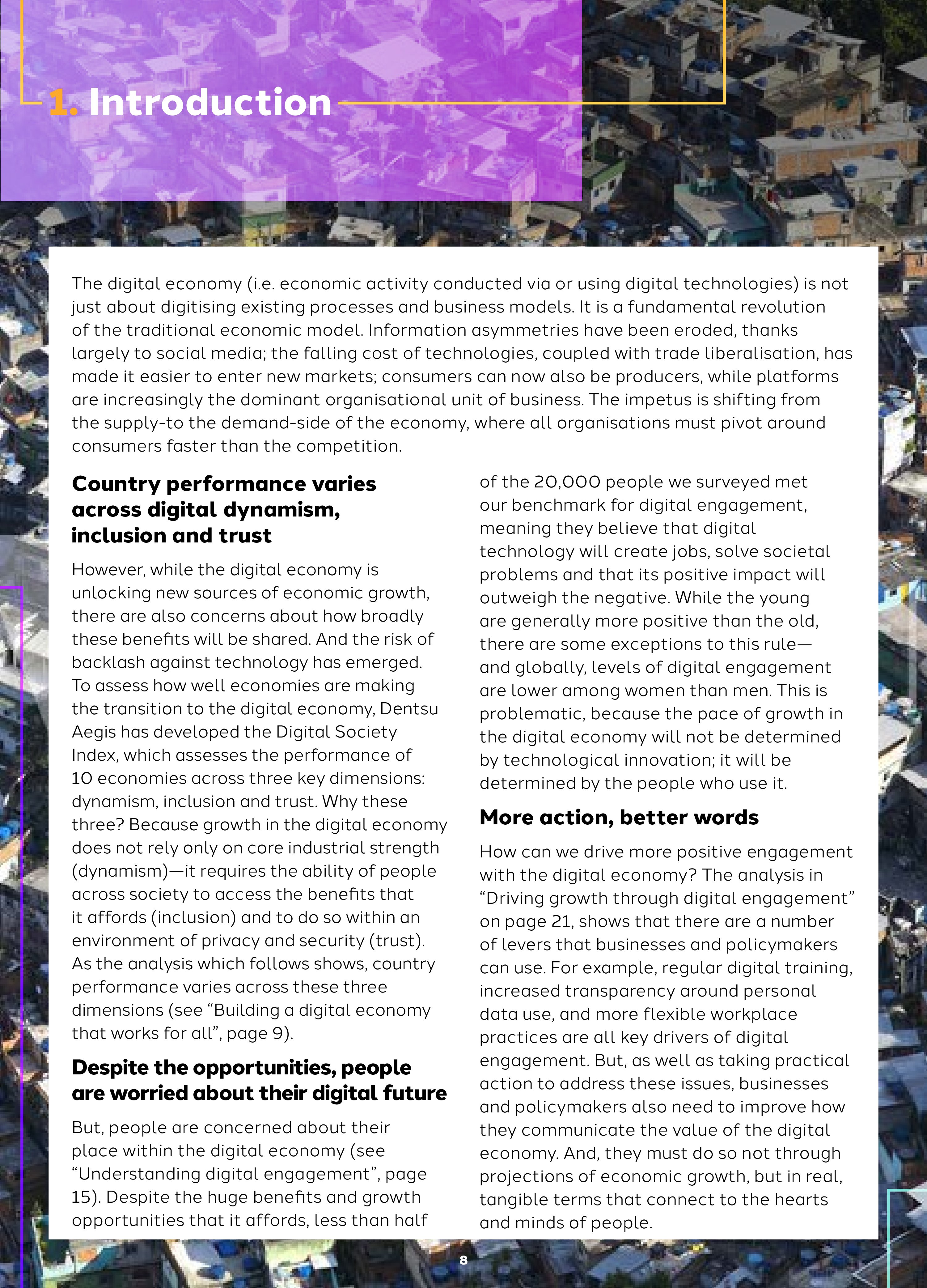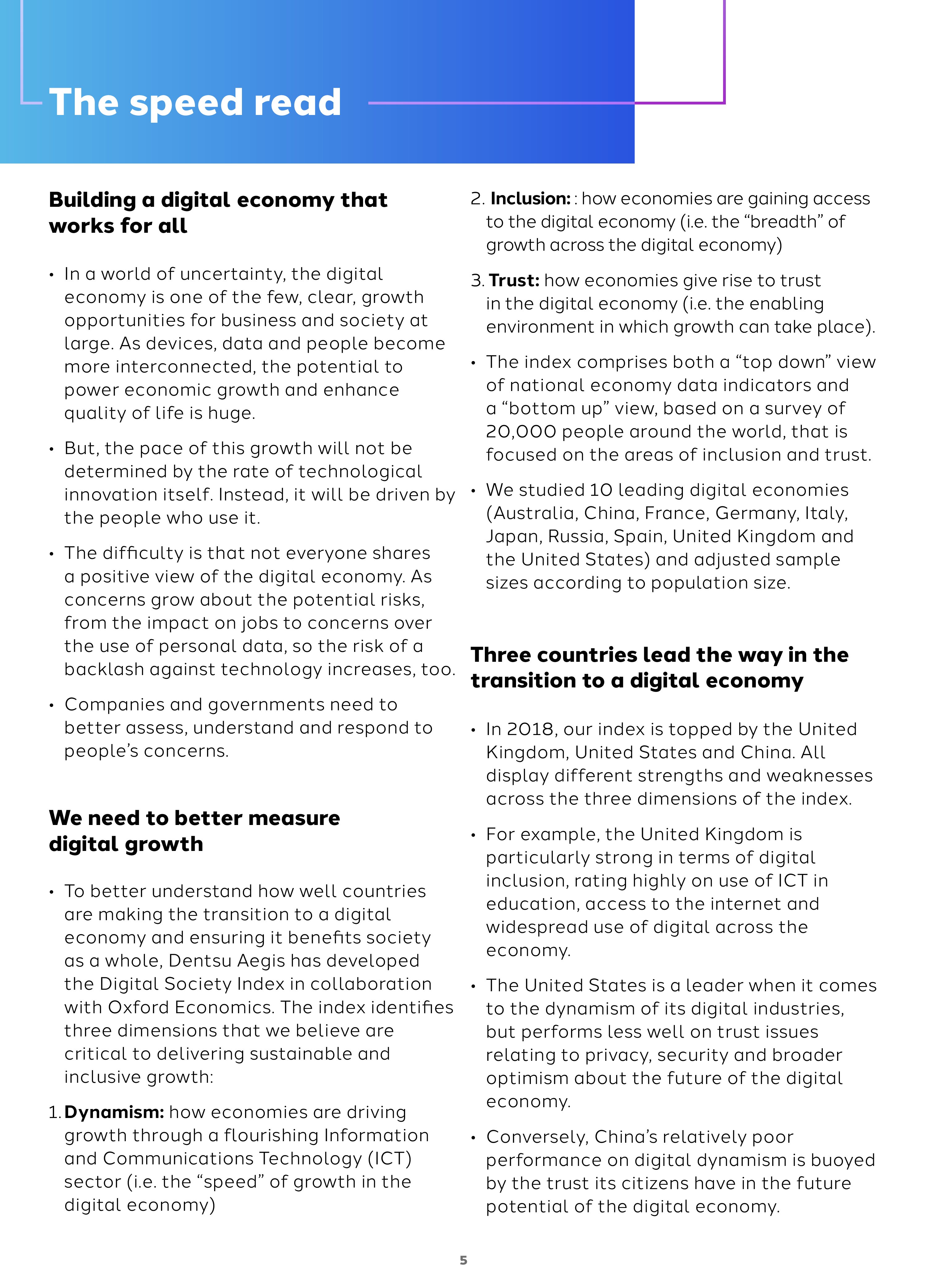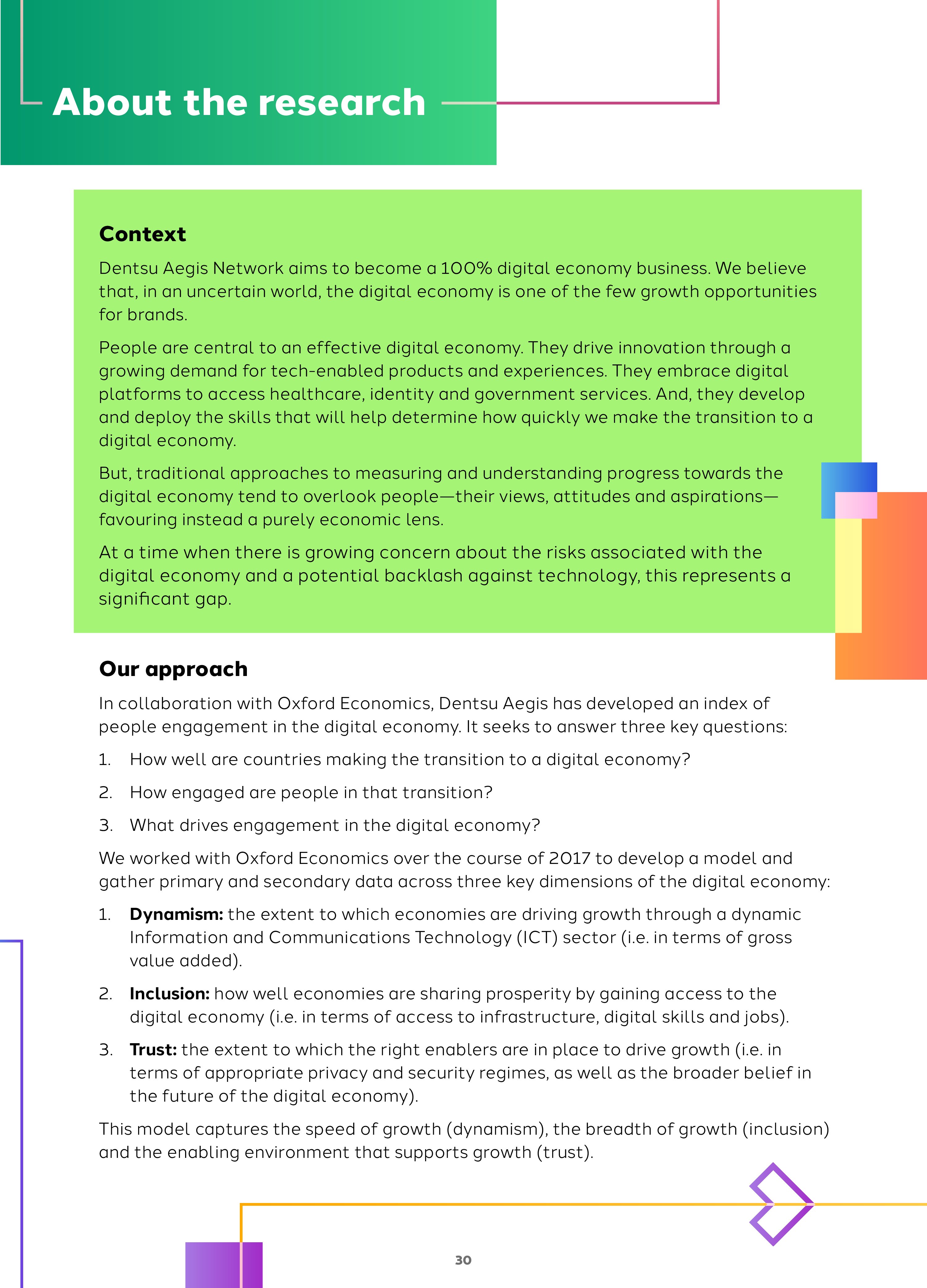 为了了解国家网络经济的发展情况,Dentsu Aegis与牛津经济研究院开发了“网络社会指数”。这个指数包括三个维度: