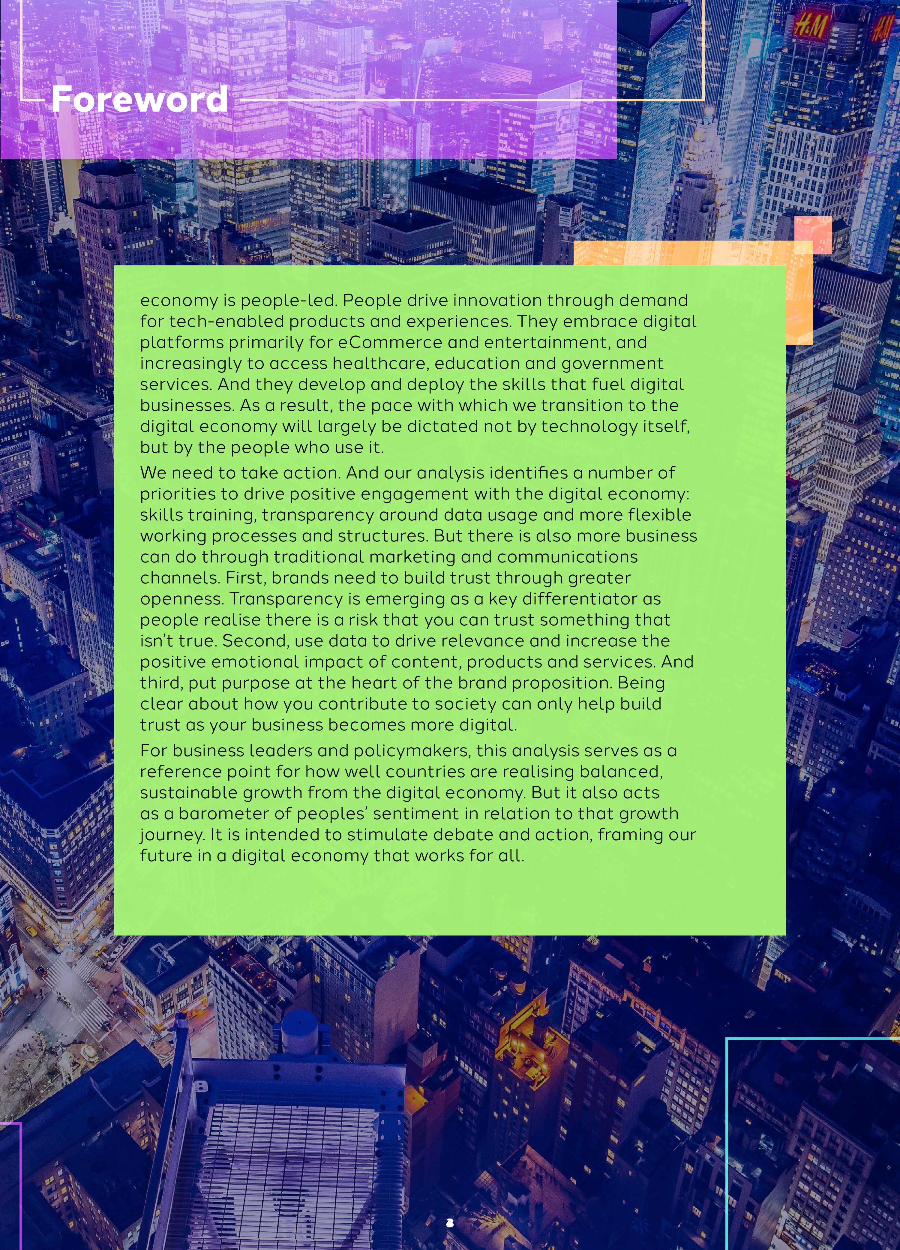 在一个充满不确定的世界里,网络经济是社会和企业发展的少数机遇。网络经济发展的步伐布局取决于科技创新本身,而是受到用户的推动。但是,并不是所有人都对网络经济持乐观态度,很多人担心其带来的危机。企业和政府需要评估、了解和相应人们的这种担忧。