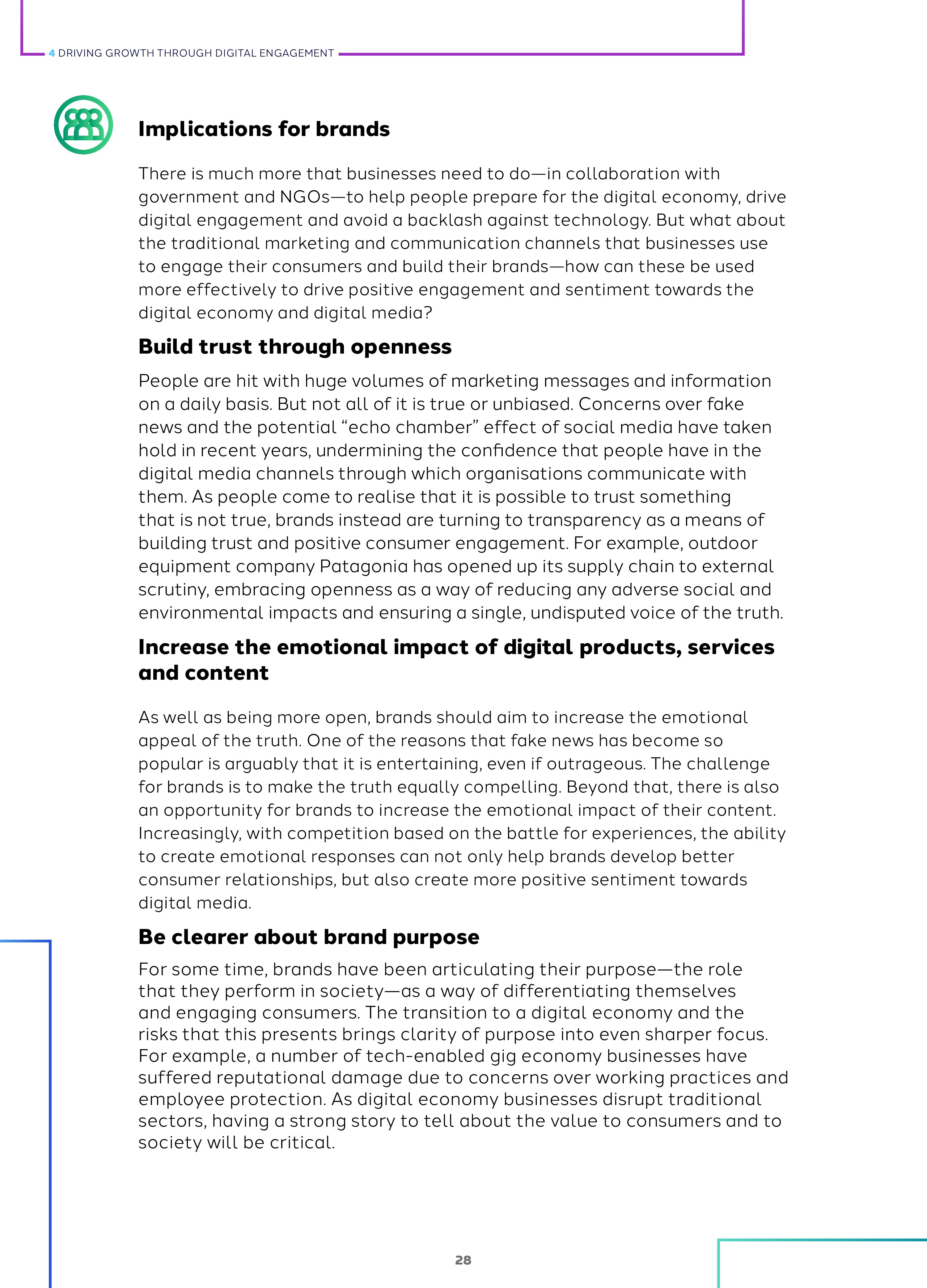 报告的另一个重要发现是,品牌可以通过营销和传播推动网络参与:通过更加开放的态度建立信任;更清晰地了解品牌目标;增加网络产品和服务对情感的影响。