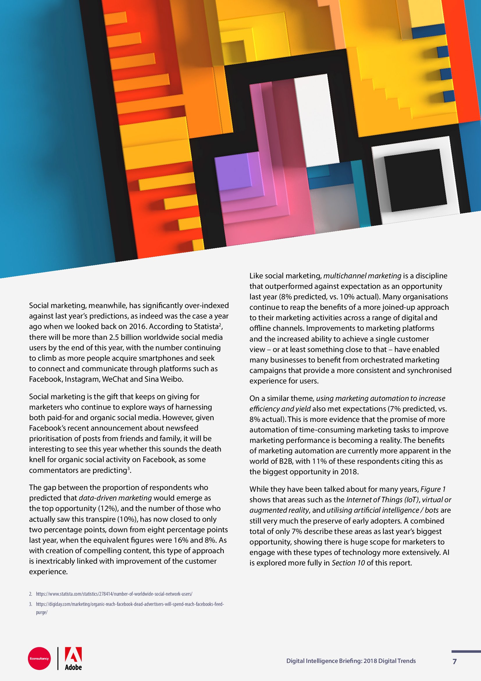 Econsultancy与Adobe携手发布了“2018年网络趋势报告”,亮点包括: