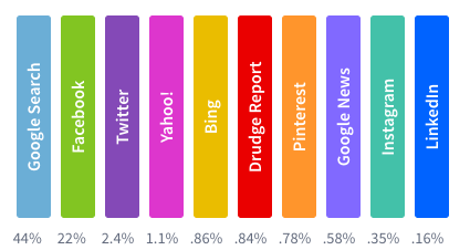 Facebook则保持稳定,引荐流量份额维持在22%左右。