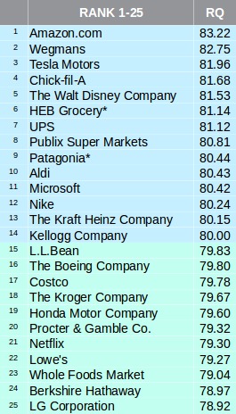 亚马逊则连续三年高居榜首。去年6月,亚马宣布以137亿美元收购全食超市(Whole Foods Market),正加速进入消费者的生活。