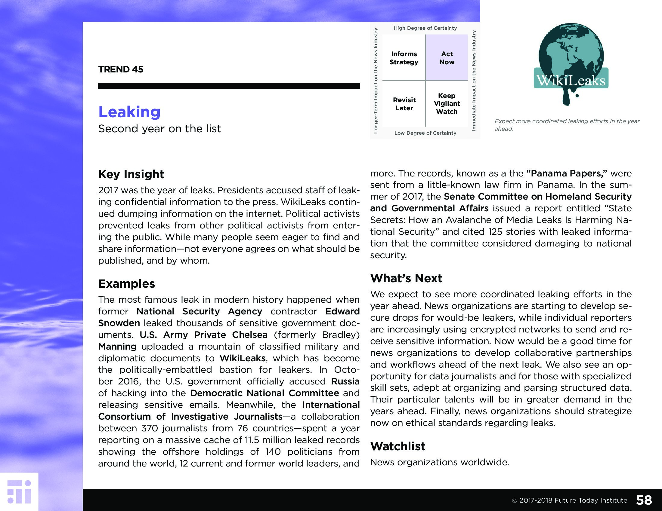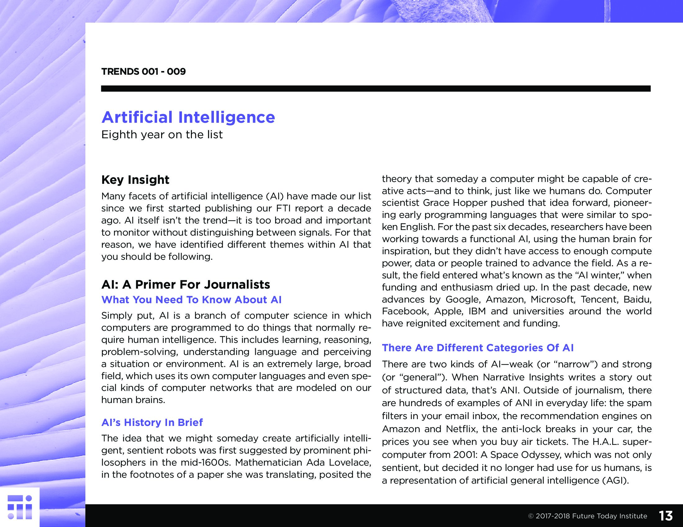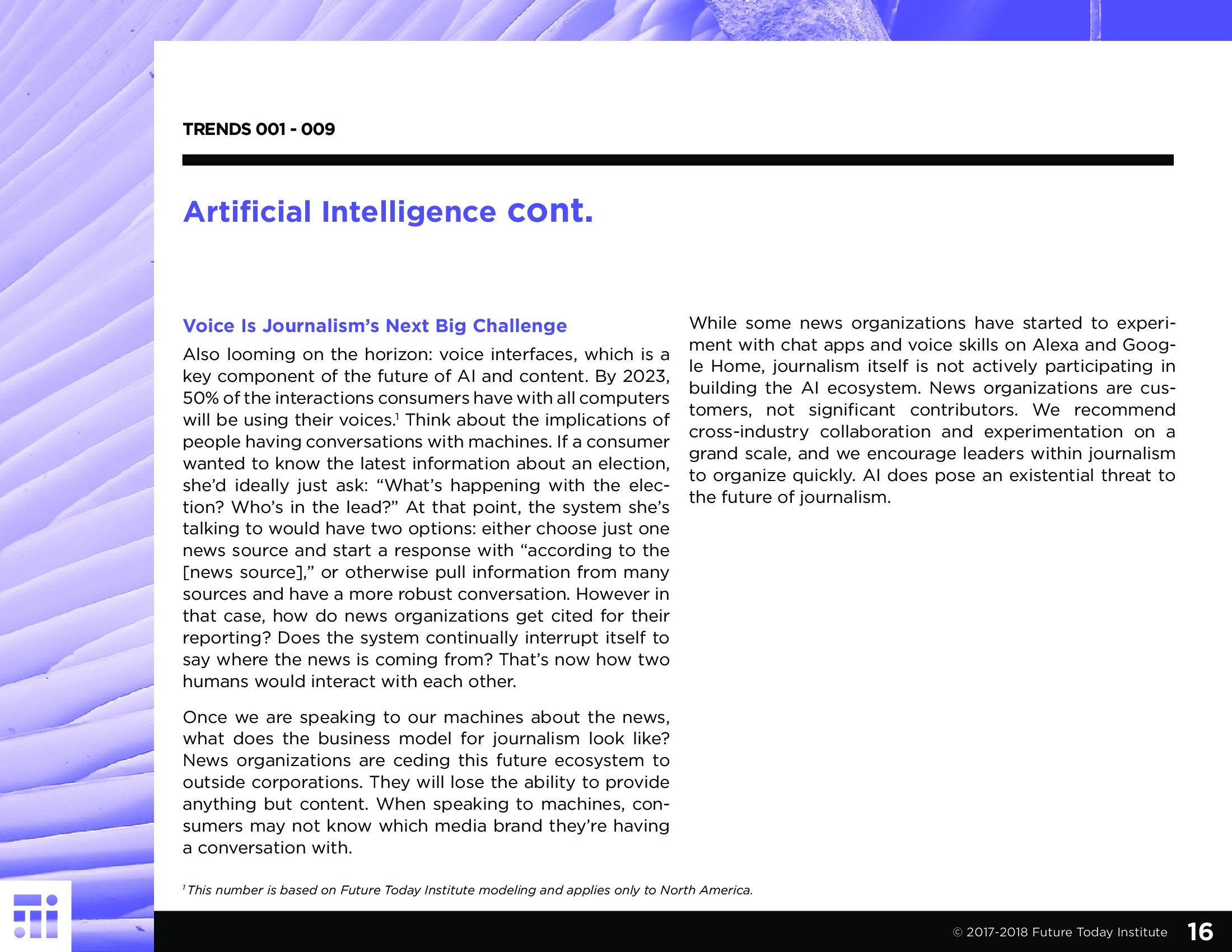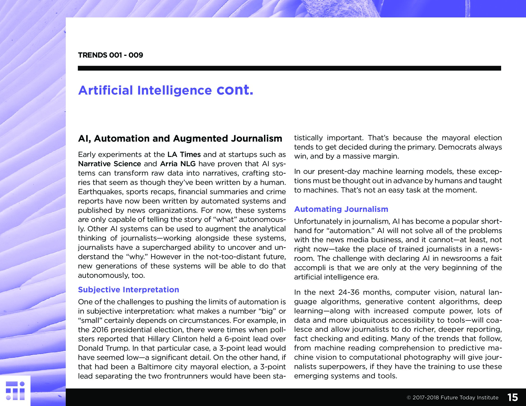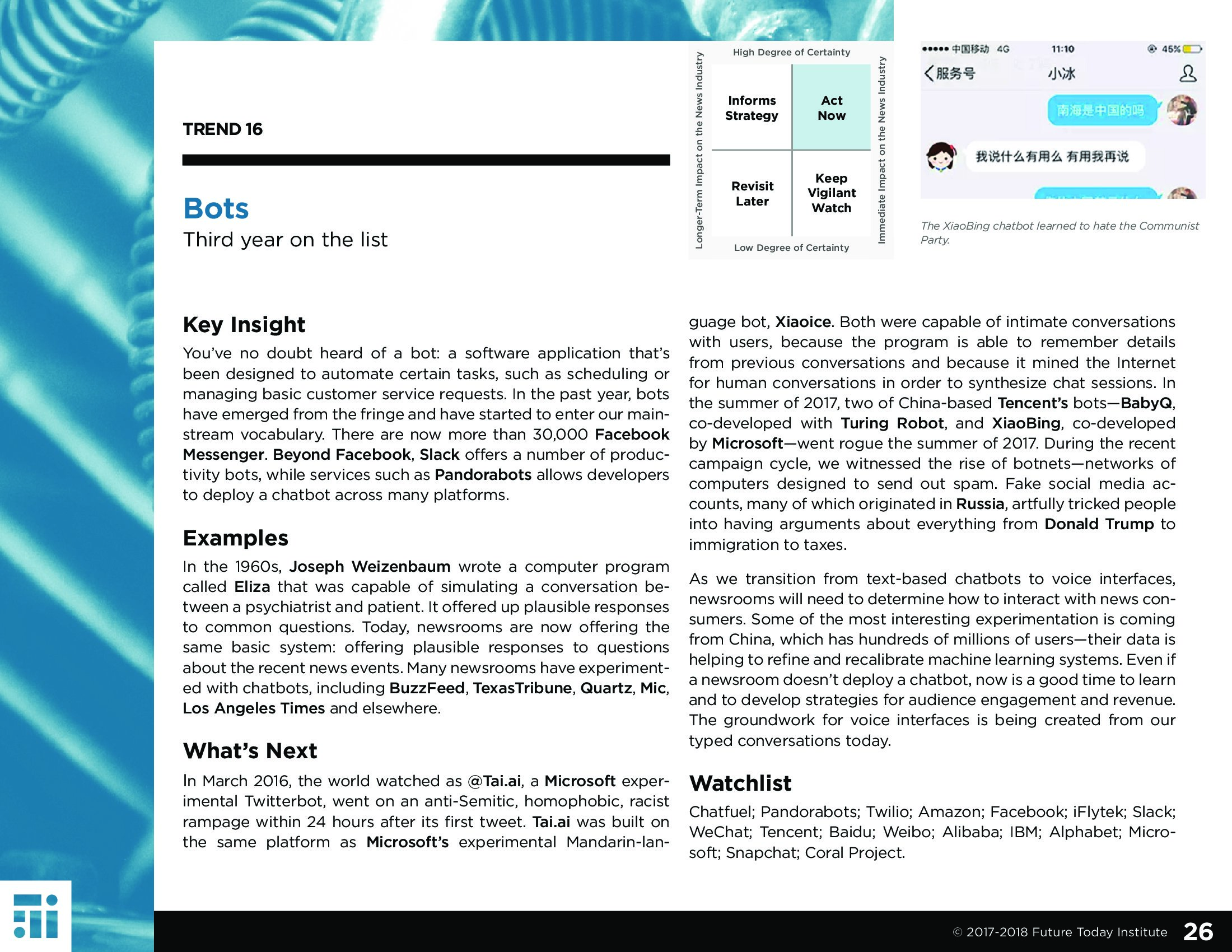 Future Today Institute发布了新报告“2018年新闻报道科技趋势”。