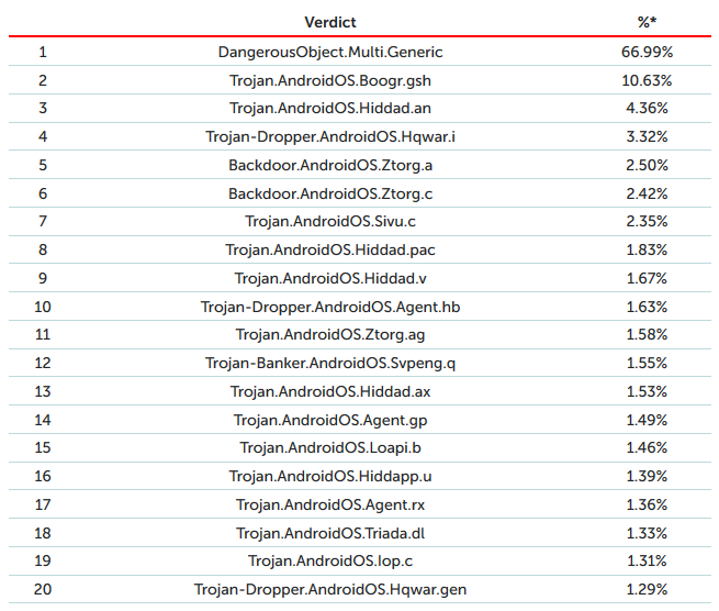 TOP 20恶意移动软件程序