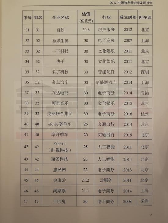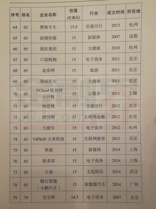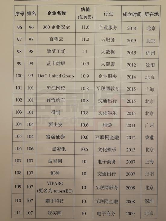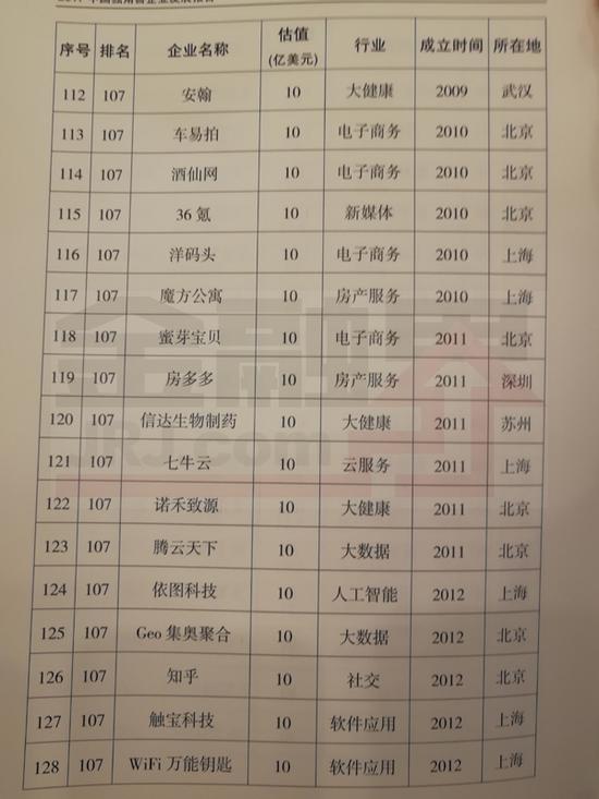 以下为164家独角兽全榜单: