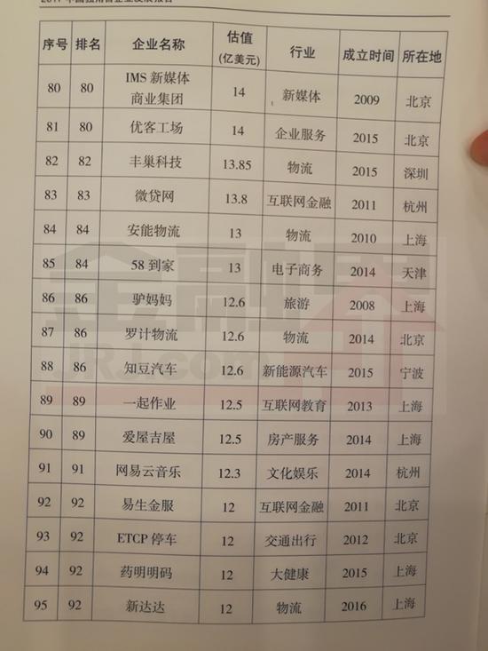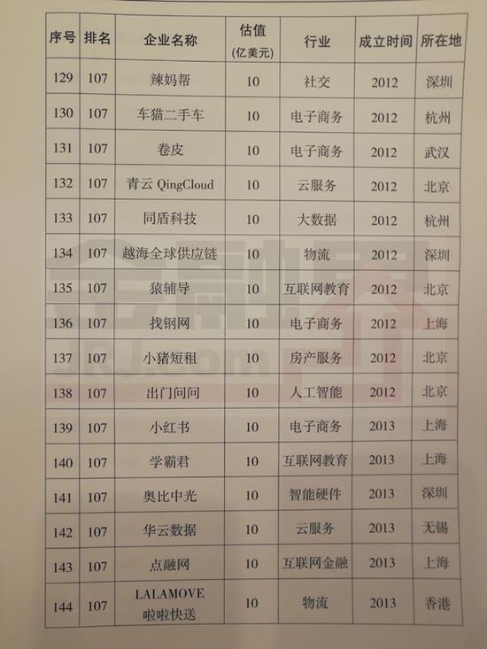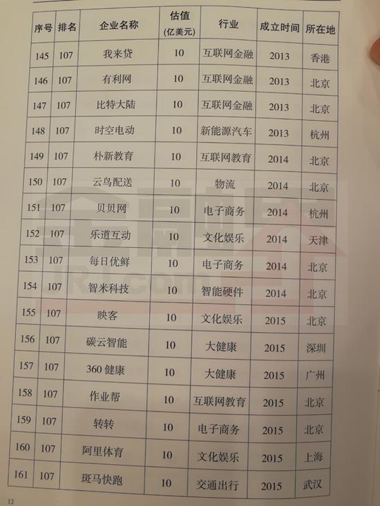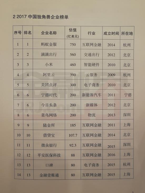 阿里云、美团点评、宁德时代、今日头条、菜鸟网络、陆金所、借贷宝列前十。