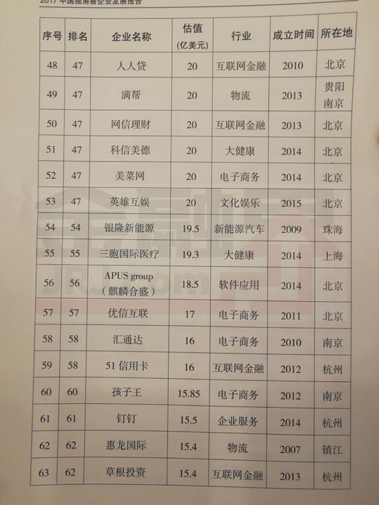 估值在50亿美元以上的还有微众银行、平安医保科技、口碑、金融壹账通、京东金融、饿了么、平安好医生、威马汽车、联影医疗、蔚来汽车。