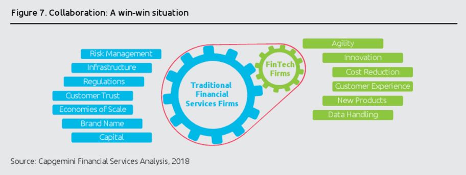 根据凯捷发布的《2018年世界金融科技报告》,随着消费者对便利和个性化要求的增加,离消费者最近的金融科技公司正在重新塑造消费者的路径。蓬勃兴起的金融科技公司对传统机构并非颠覆,而是合作互补,从而真正打造以金融消费者为中心的现代金融服务体系。