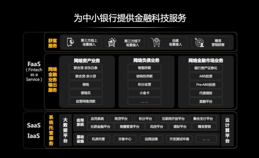 在中国,商业模式定位为B2B2C的京东金融,主打带着场景和客户,带着对金融的深度理解能力,去服务金融机构。一方面帮金融机构更好的运营存量业务,挖掘更深的用户价值,另一方面,为金融机构带去增量业务和收入。其金融科技产品和服务已在广泛赋能金融机构,成为中国国内唯一一家战略合作覆盖国有银行、股份制商业银行、城商行、农商行四级银行机构的科技公司,并开始了全球扩张步伐。