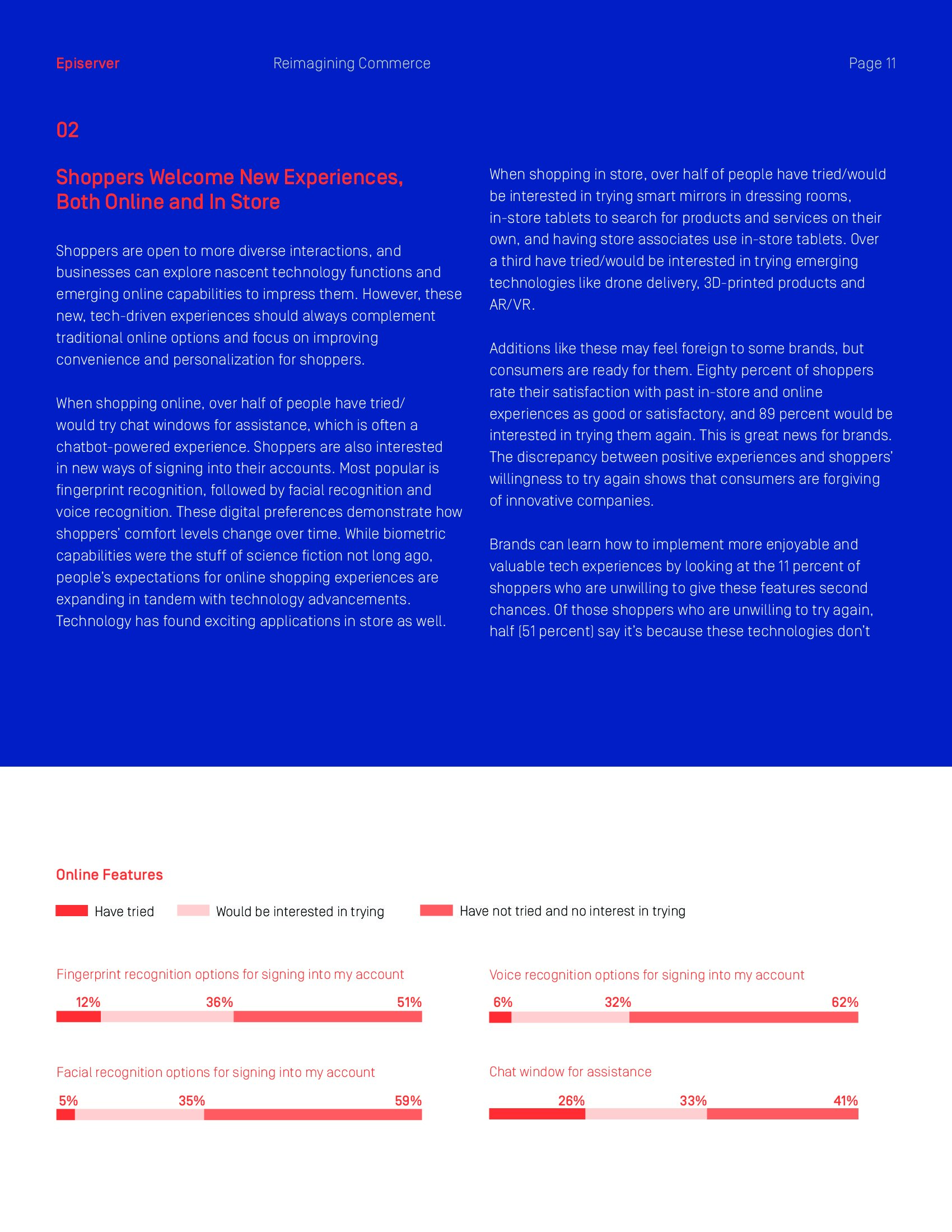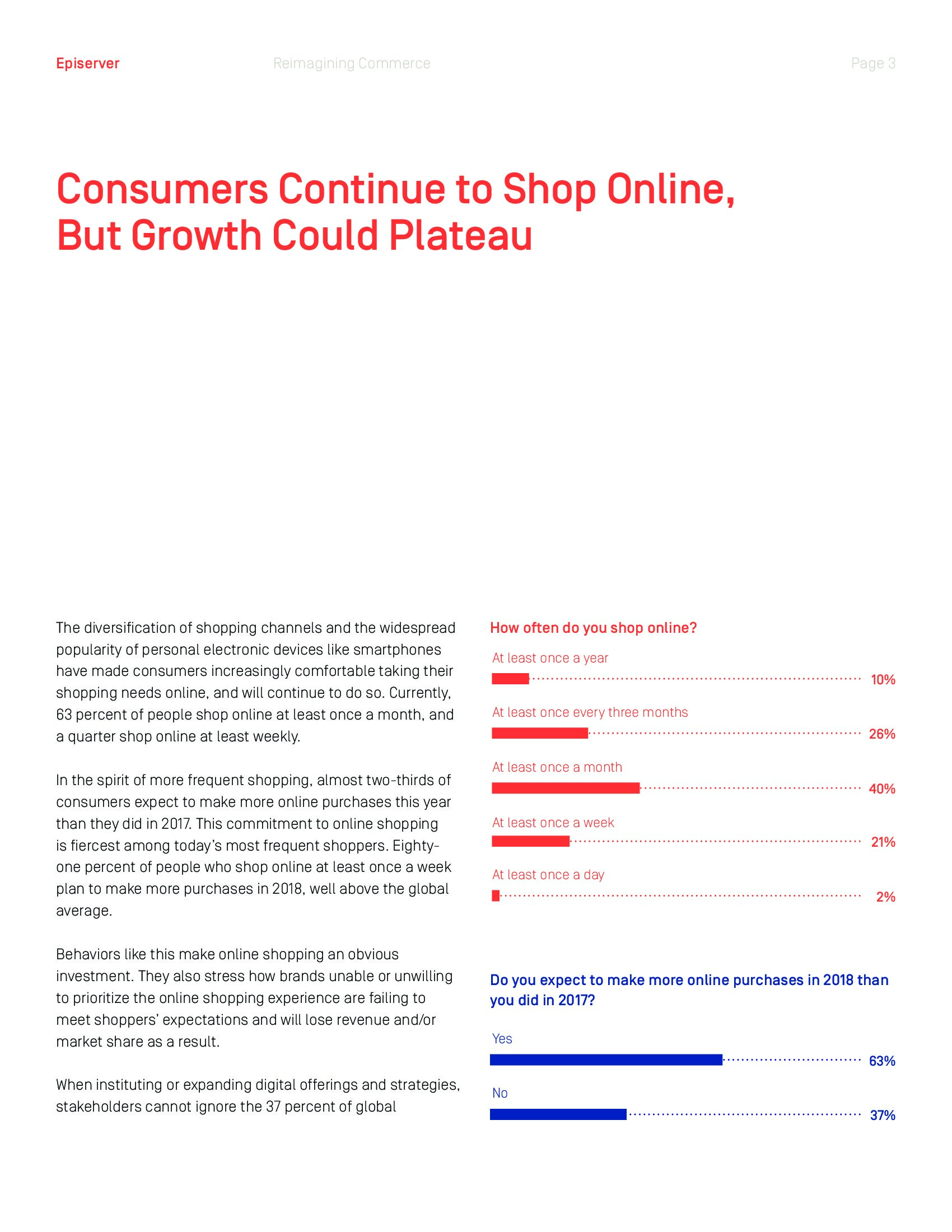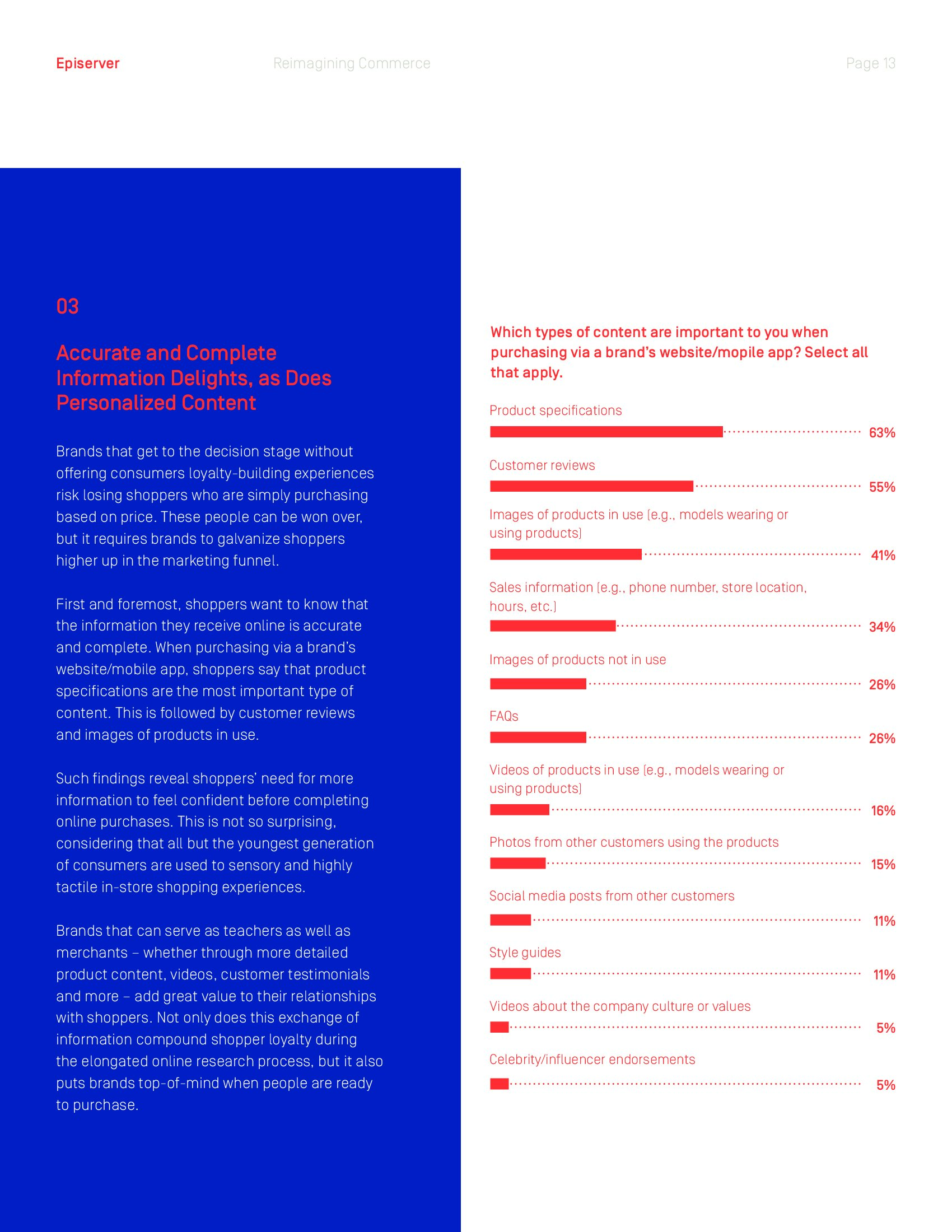 Episerver调查了美国、英国、德国和北欧地区的4000多名购物者,并发布了最新报告“重塑电子商务:体验驱动”。大多数网络购物者会轻松地提供他们的电子邮件(59%)和性别(53%)以获得更好的网络购物体验,但他们很大程度上回避了共享许多其他数据类型,包括地址(29%)和当前位置(20%)、心理信息(11%)和收入(10%)。