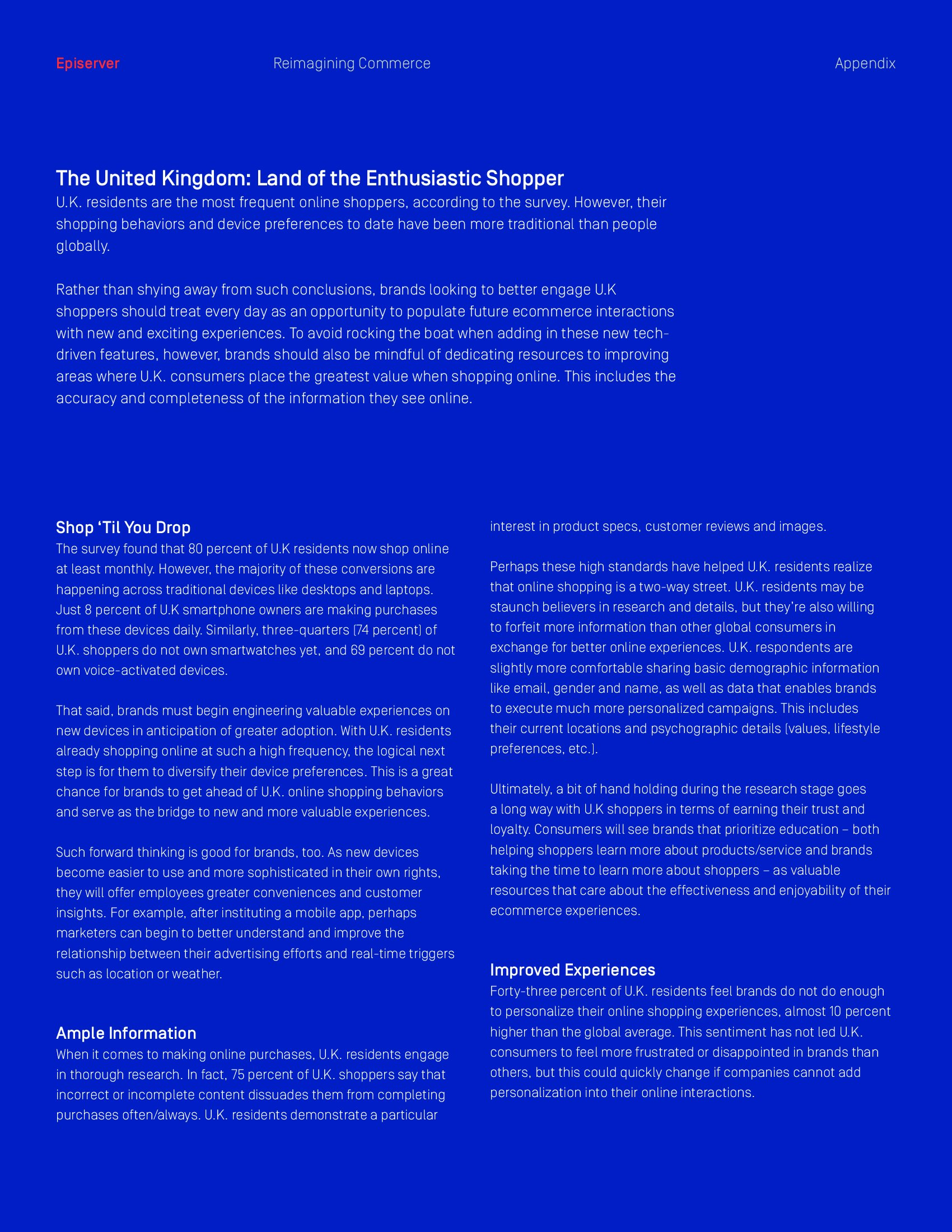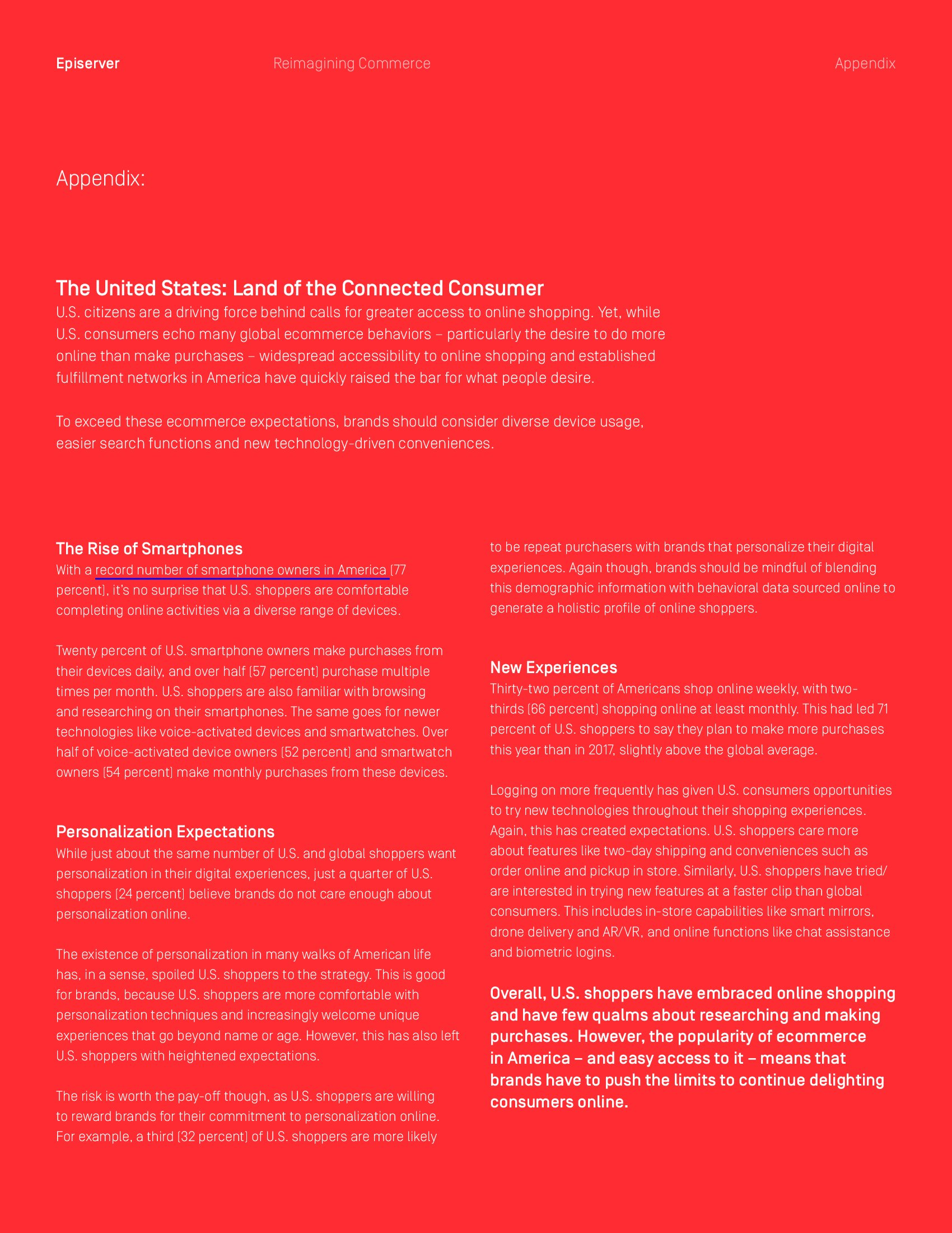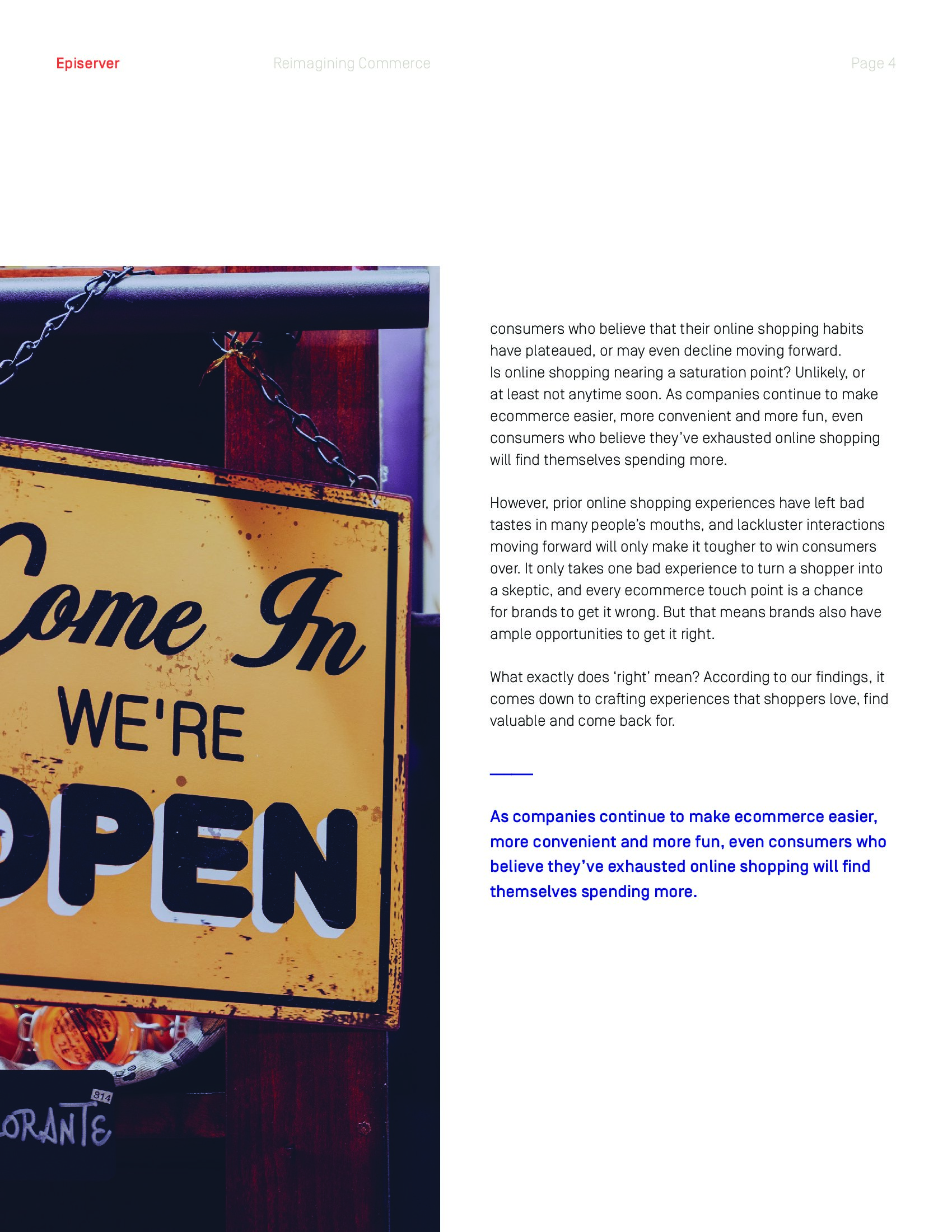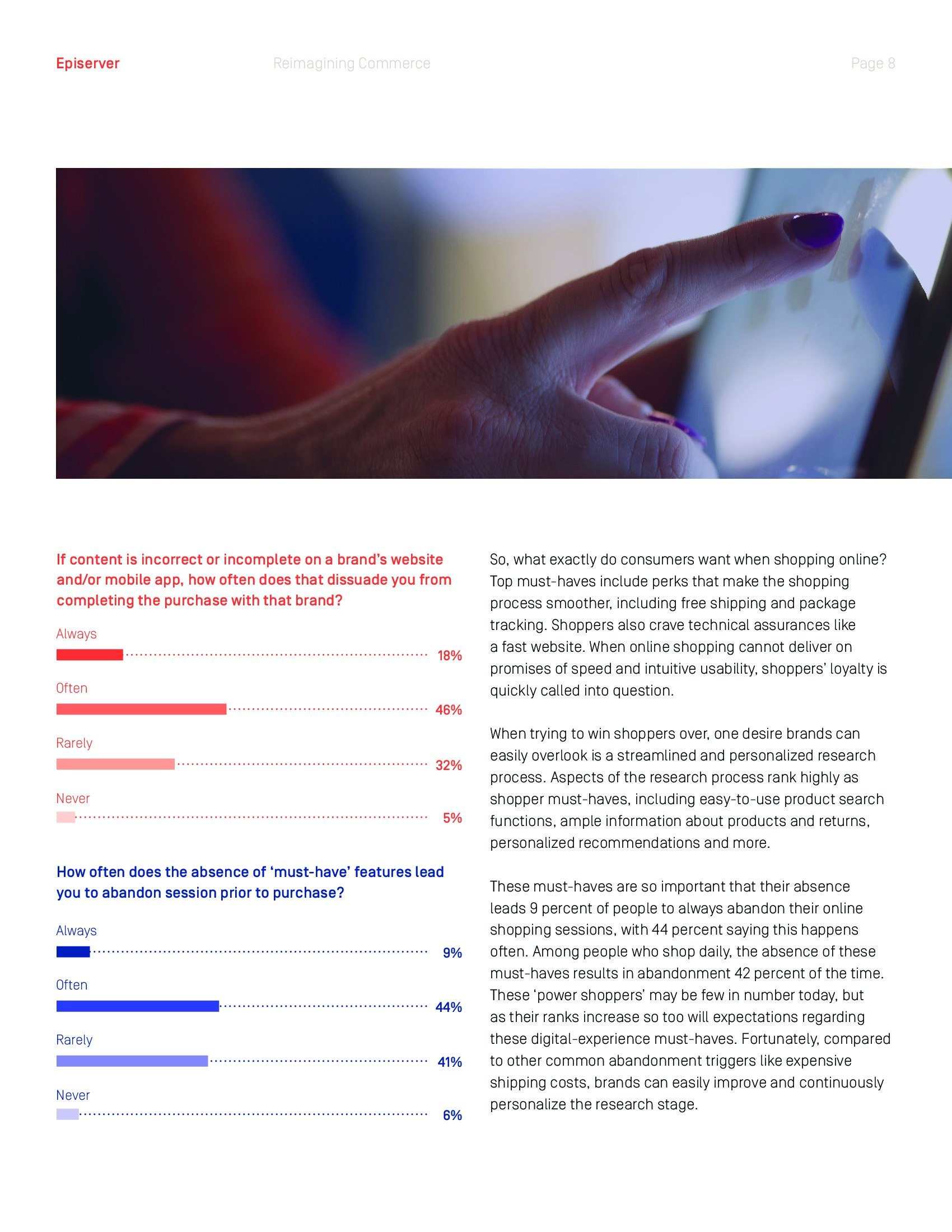 Episerver调查了美国、英国、德国和北欧地区的4000多名购物者,并发布了最新报告“重塑电子商务:体验驱动”。大多数网络购物者会轻松地提供他们的电子邮件(59%)和性别(53%)以获得更好的网络购物体验,但他们很大程度上回避了共享许多其他数据类型,包括地址(29%)和当前位置(20%)、心理信息(11%)和收入(10%)。