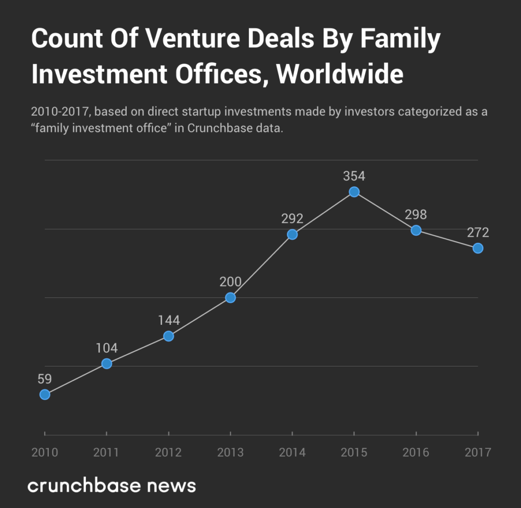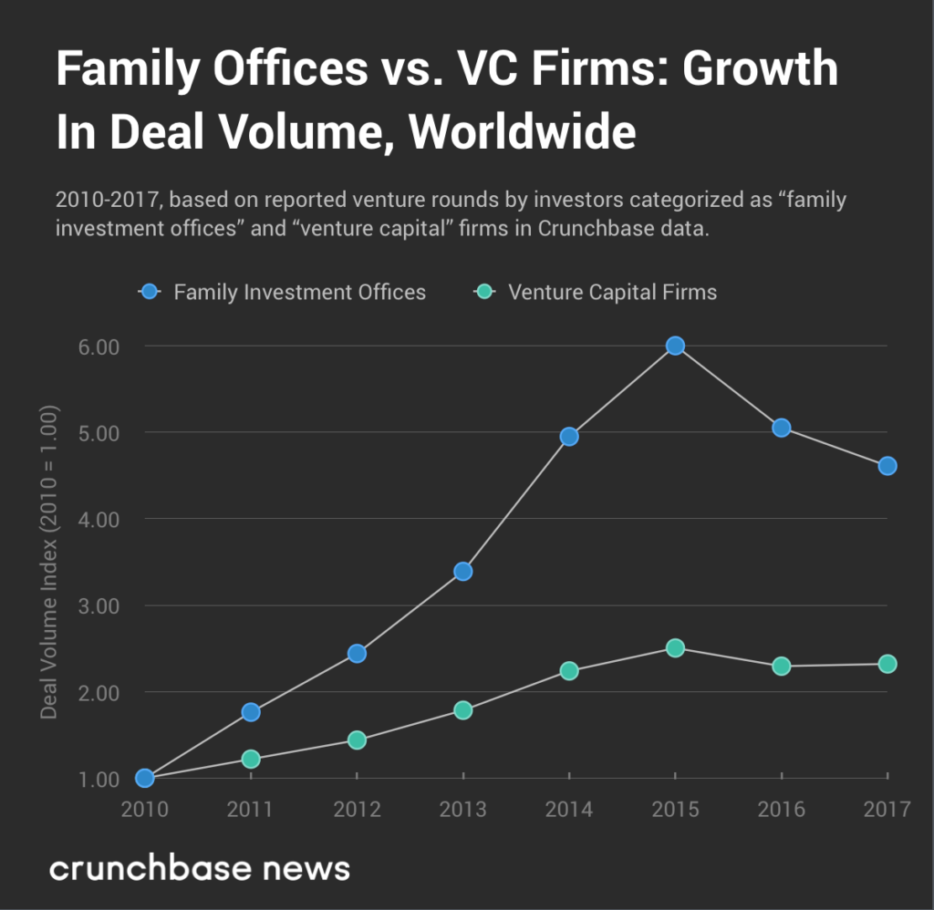 也就是说,在相当长的一段时间内,家族办公室投资交易量增长速度高于风险投资。