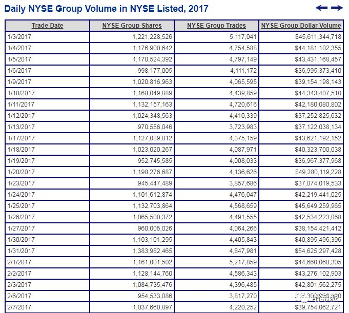 据 Coinmarketcap 数据显示,2017 年数字货币市场日交易量最高达到 556.59 亿美元(2017 年 12 月 20 日),与 2016 年最高点(2016 年 8 月 3 日)相比,增长 95.68 倍。而 556.59 亿美元的日交易量,已经相当于纽约股票交易所 2017 年的日均交易额。