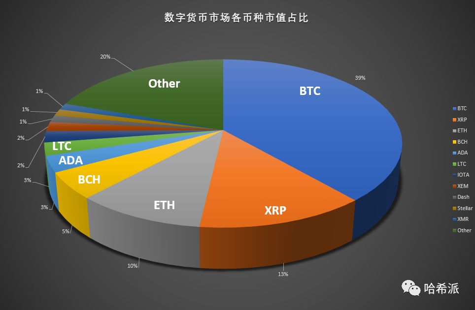 一些在今年异军突出的数字货币抢占了比特币原本的市场。比如,瑞波币市场份额由 1.32%提升至 14.77%;以太坊市场份额由 4.04%增长至 12.21%;莱特币市场份额由 1.22%上升至 2.09%;而 2017 年才诞生的比特币现金以及 Cardano 在数字货币市场中则占比 7.05%、3.11%。可以看出虽然目前比特币在整个市场中依旧占据主导地位,但不再像以前那样“一枝独秀”,一超多强的局面已经形成,数字货币市场正呈现出多样化、分散化的发展趋势。