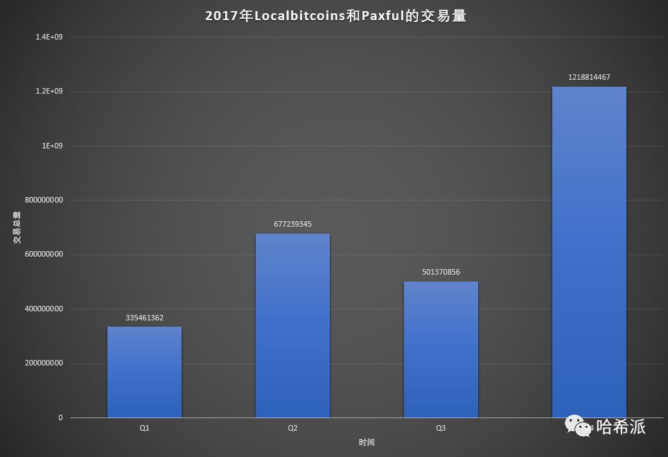 值得一提的是,9 月初中国政府对 ICO 和比特币交易进行整治清理后,场外法币兑换市场尤其是比特币兑人民币市场的交易量激增。据 Coindance 数据显示,LocalBitcoin、Paxful 两大海外场外交易平台第四季度 BTC/CNY 交易量达 12.43 亿元,环比增长 148%。