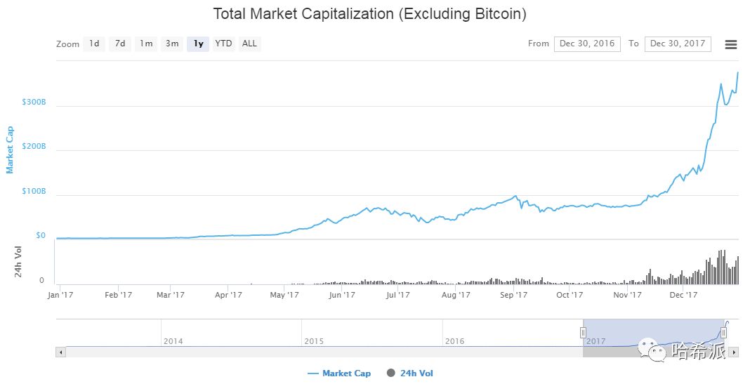- 除比特币以外的数字货币市场:市值增长 173.74 倍