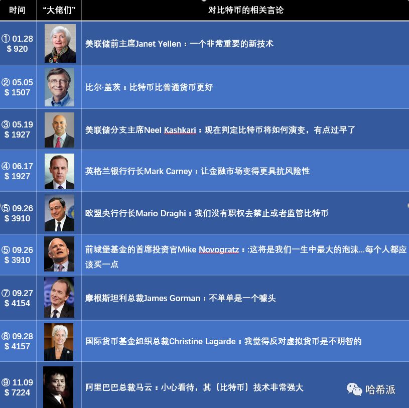 各领域的“大佬们”开始谈及数字货币 :此外,2017 年各领域的“大佬们”除了积极布局区块链技术之外(就拿 EEA 举例,该联盟目前已有包括微软、摩根大通等在内 400 多家大型企业加入),谈及数字货币的次数也逐渐增多。
