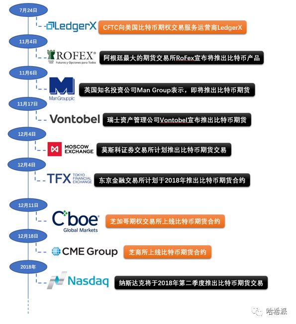 即将以及已经推出比特币期货交易的机构(橙色代表已经推出;黑色为待推出)