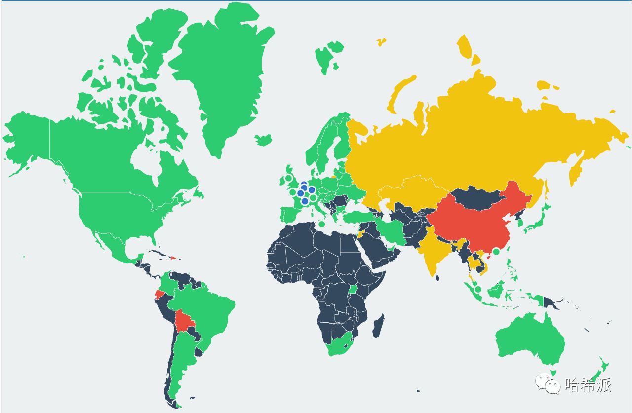 据 BitLegal 数据显示,除了德国、日本、澳大利亚、加拿大、法国等寥寥无几的国家已公开承认比特币的合法地位之外,其他国家对于比特币态度则随当地的局势以及影响力而改变。