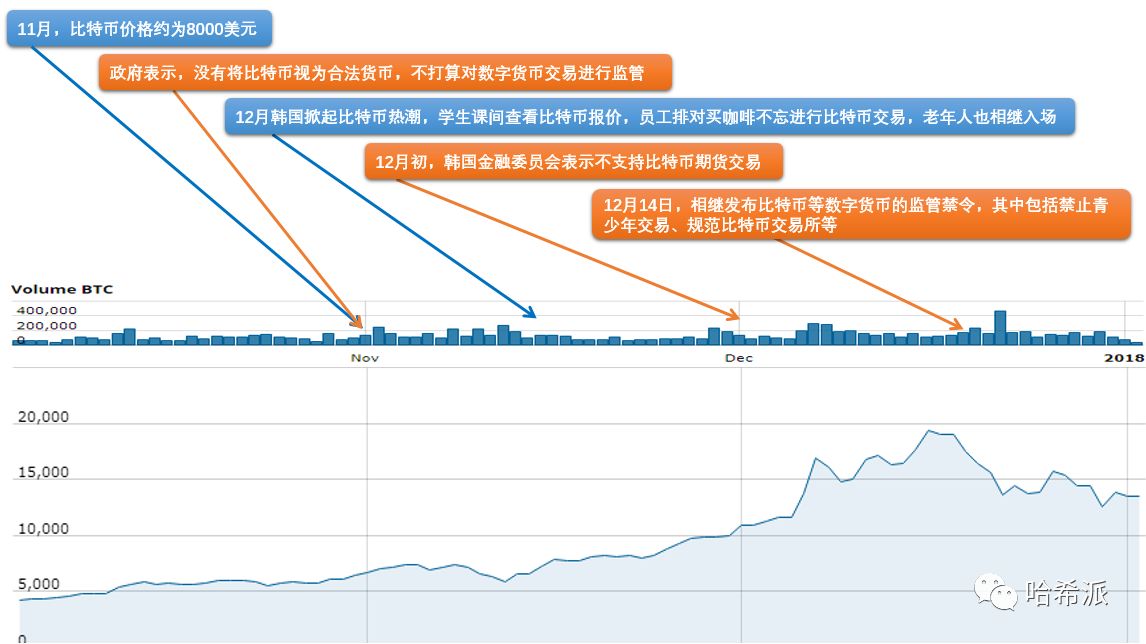 从 2016 年开始,韩国数字货币市场的交易量逐渐提高,为此该国金融服务委员会于 16 年年末建立工作小组讨论相关监管框架。步入 2017 后,韩国交易热度持续升温,入场交易者增多,交易平台溢价现象严重。而中国发布 ICO 禁令之后,韩国亦跟随其后,于 9 月 29 日宣布禁止所有形式的 ICO 活动。到了 12 月份,韩国还多次发布比特币监管禁令以缓解当地过度膨胀的投机现象——12 月初韩国金融委员会表示不支持比特币期货交易;月末则发布多项比特币监管政策,以规范交易平台、禁止未成年人以及外国公民开设账户等等。虽然韩国对于数字货币的态度也很强硬,但目前出台的政策大都以规划化交易平台为主。