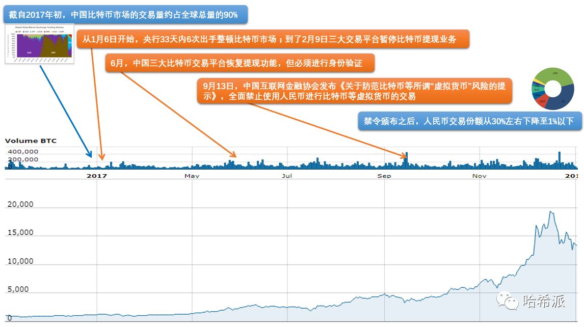 到了年末,交易平台上人民币市场的交易份额下跌至 1%以下;而美国、日本、韩国、欧洲市场则占据全球比特币市场 80%以上的份额。