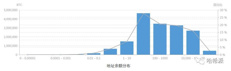 此外据 btc.com 数据显示,比特币的分布具有“贫富悬殊”的特点——约 4%的地址掌握了 97%的比特币,这说明目前的比特币市场存在很严重的价格操控风险。