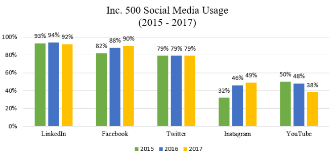 麻省大学达特茅斯分校追踪了Inc. 500强企业社交媒体使用情况,并发布了更新: