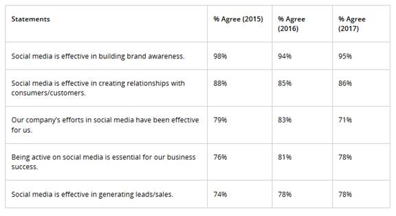 与过去四年的研究一致,92%的Inc. 500强企业拥有LinkedIn账户,90%拥有Facebook账户,79%拥有Twitter账户。