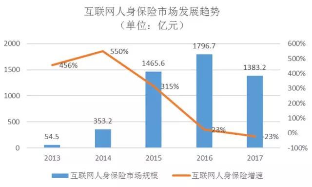 中保协近日发布的《2017年互联网人身保险市场运行情况分析报告》显示,2017年互联网人身保险市场规模发展势头放缓,全年累计实现规模保费1383.2亿元,同比下滑23%。