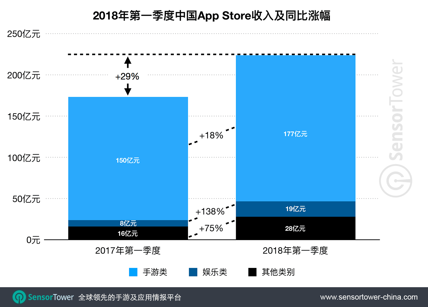 中国App Store吸金量Q1继续称霸全球,手游占比79%,娱乐App增幅第一