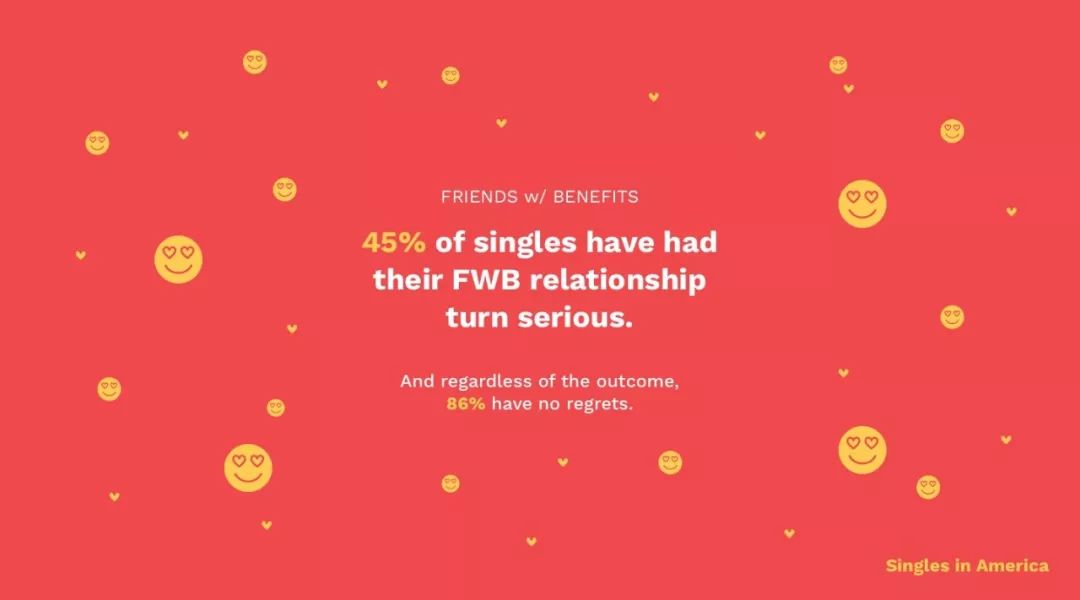 - 炮友的闺蜜应该排除在约会对象外(62%),69%的单身人士认为不应让闺蜜知道这种关系