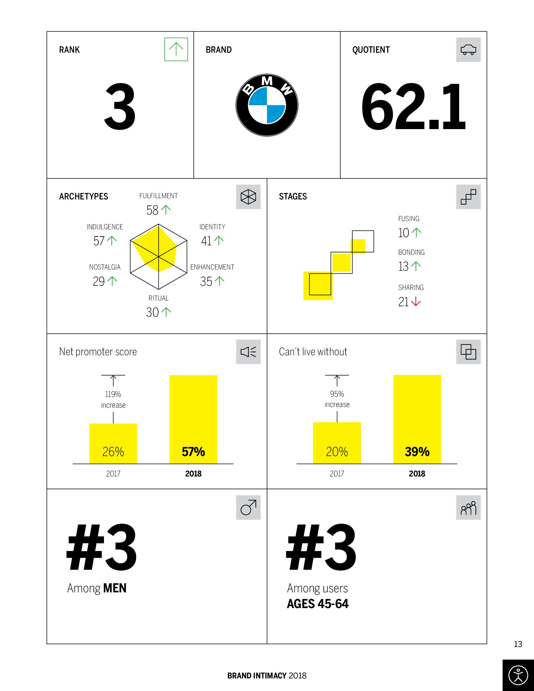 宝马排在第三位,净推荐值在过去一年有很大提升,并成为用户离不开的品牌。