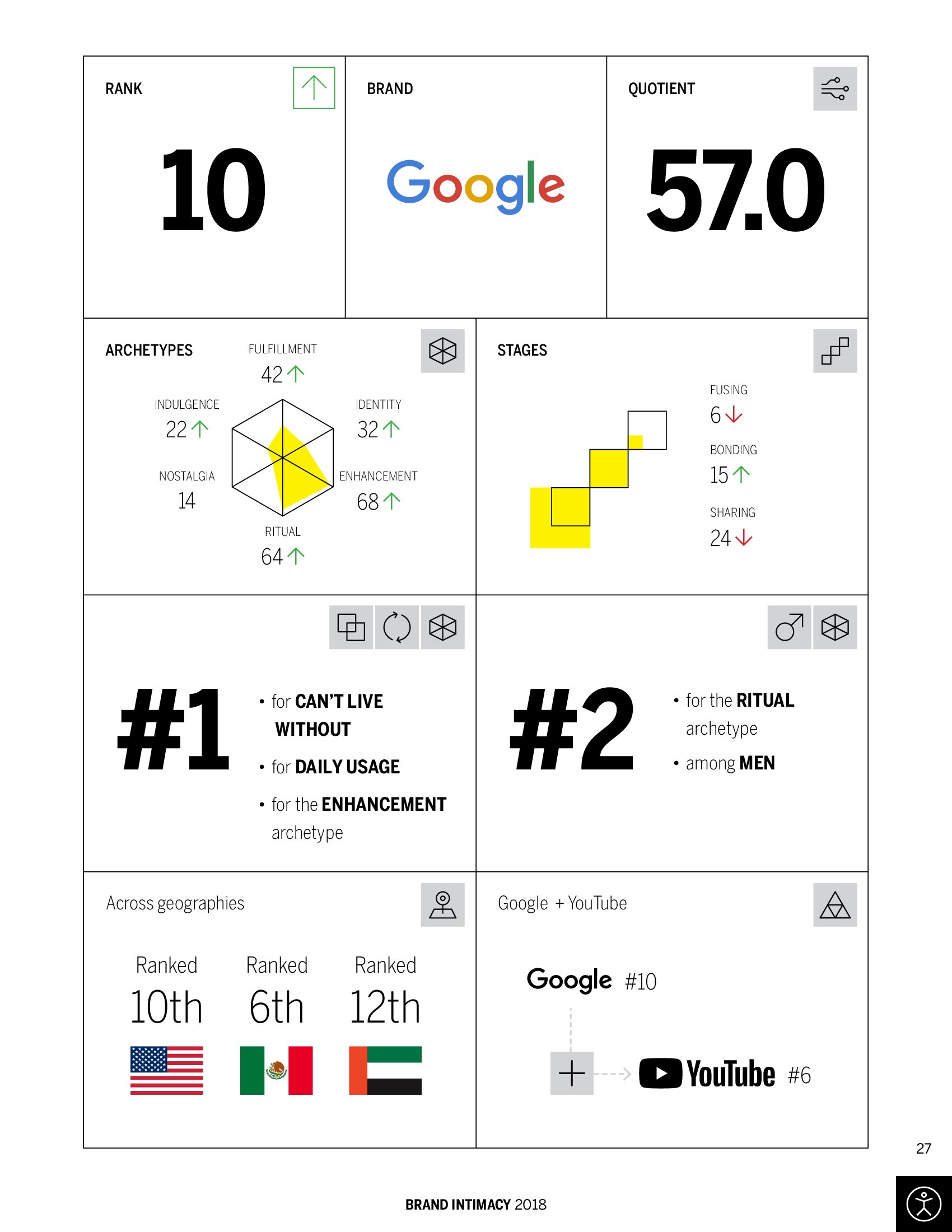 谷歌名列第十位,是不能没有的品牌和日常生活的伙伴,在男性消费者中排名第二;